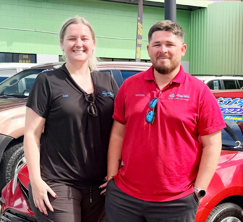 Hayden McKandie, owner of Mulgrave Motors, with fiancée Caitlin