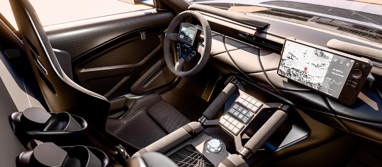 The concept is powered by a V8 engine producing 820kW and 1152Nm of torque. It rides on 18-inch beadlock wheels with custom 40-inch off-road tyres and features Brembo Motorsport brakes, extreme ground clearance, a short wheelbase and specialised suspension tuning to maximise off-road capability. Structural safety measures include an integrated roll cage, four-point harness system and reinforced construction using fibreglass, carbon fibre and Kevlar.