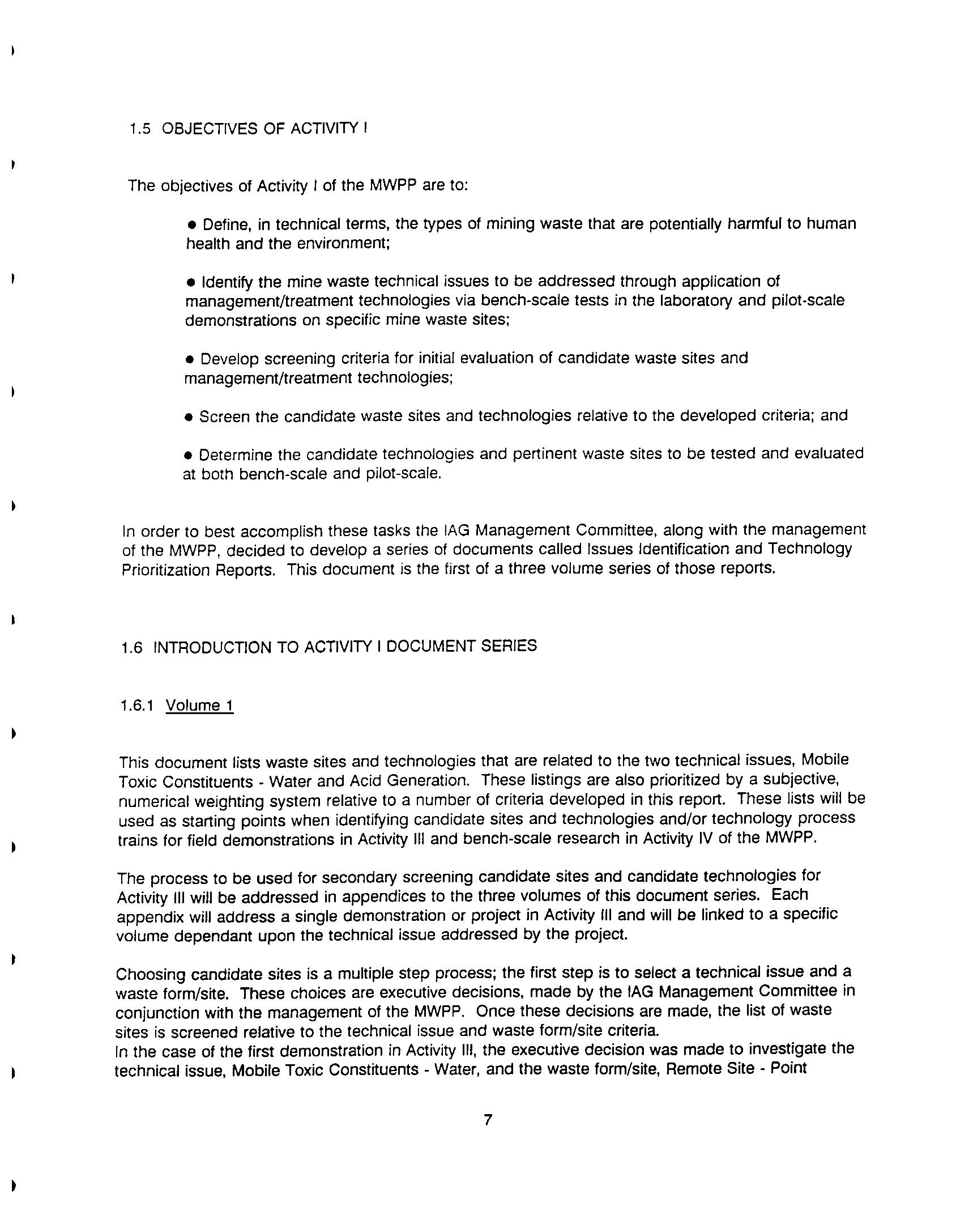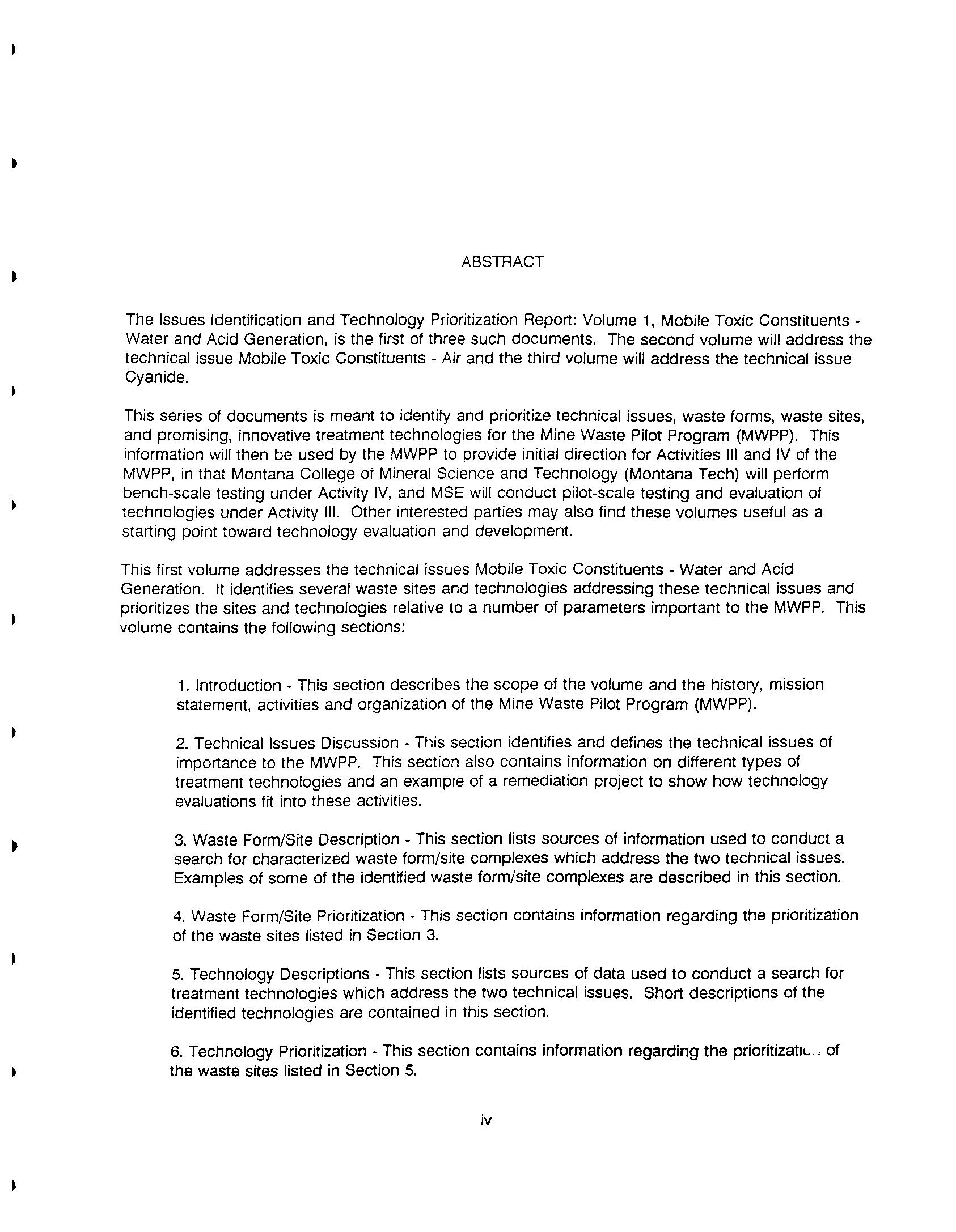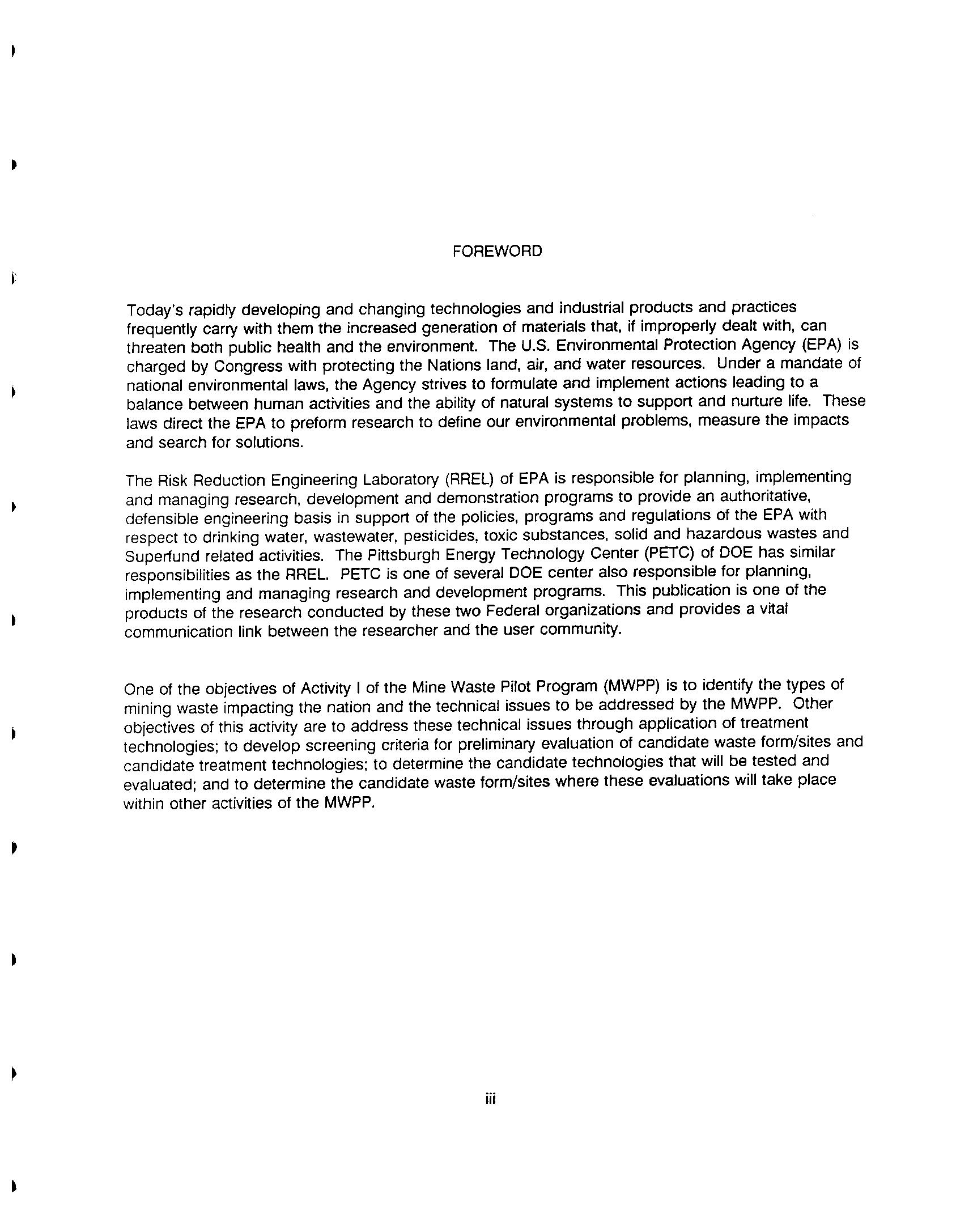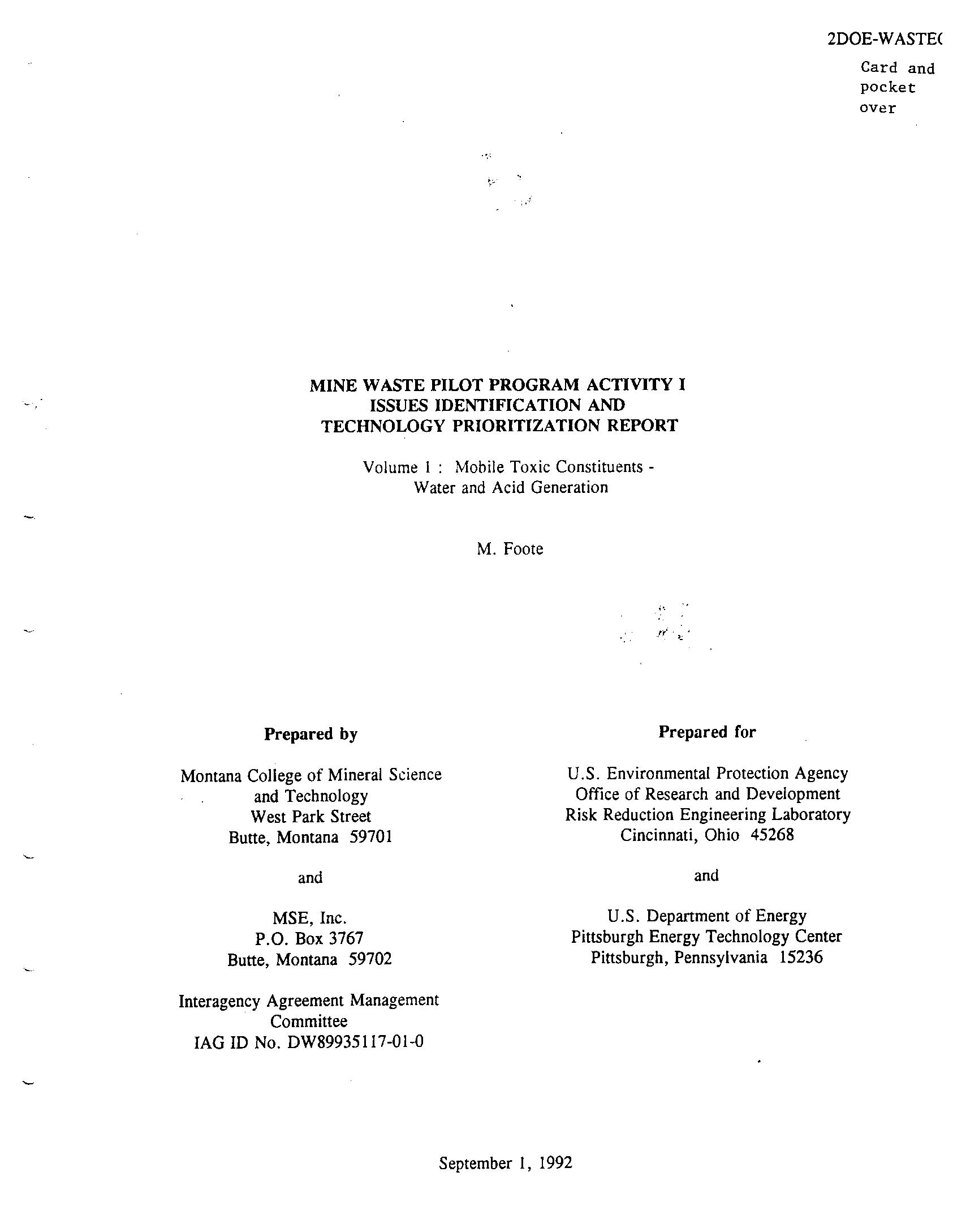 Mine Waste Pilot Program Activity 1 - Issues Identification and Mine Waste Pilot Activity 1 - Issues Identification and Technology Prioritization Report Technology Prioritization Report