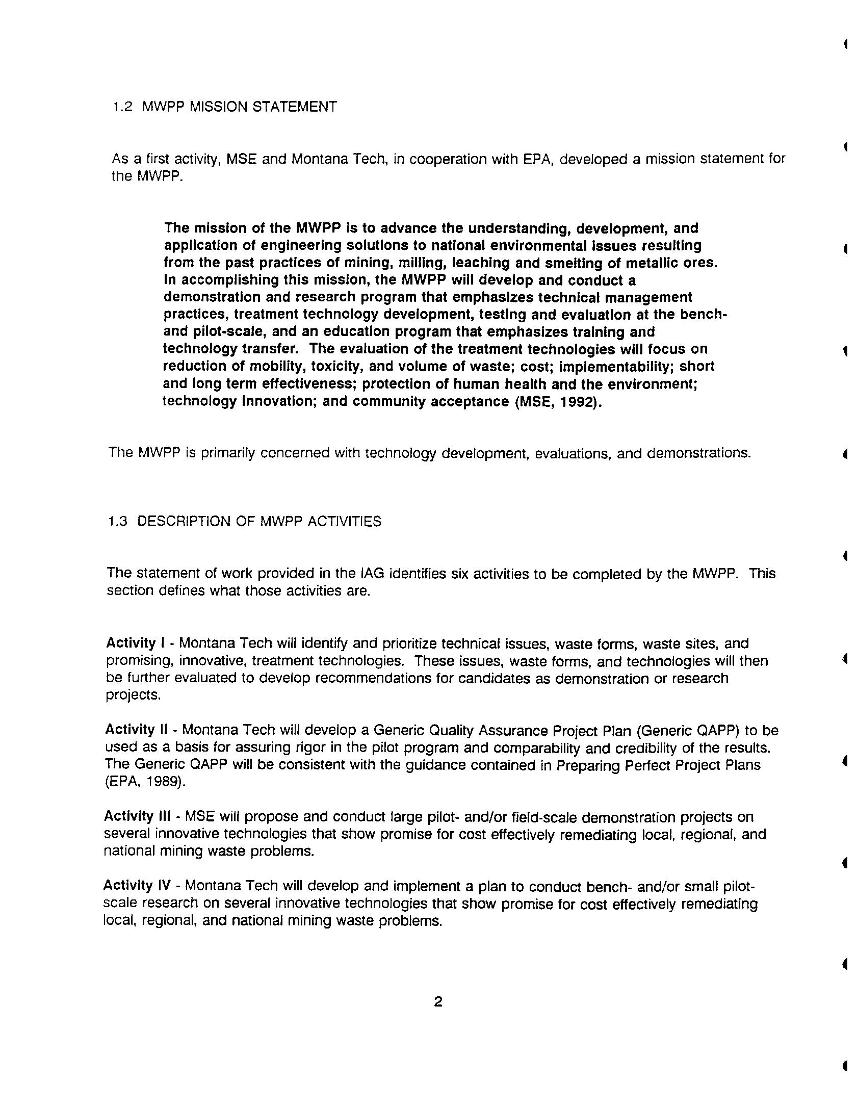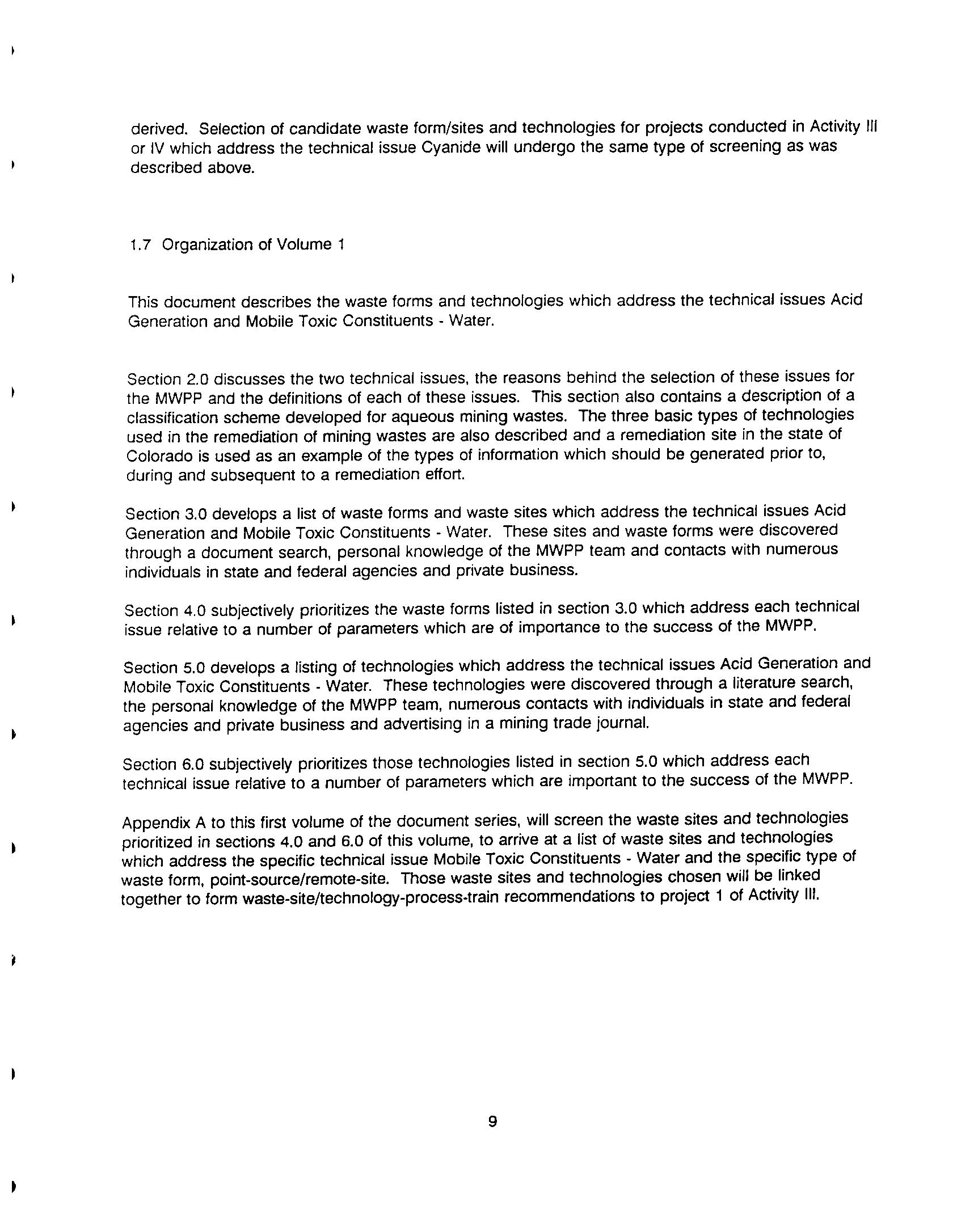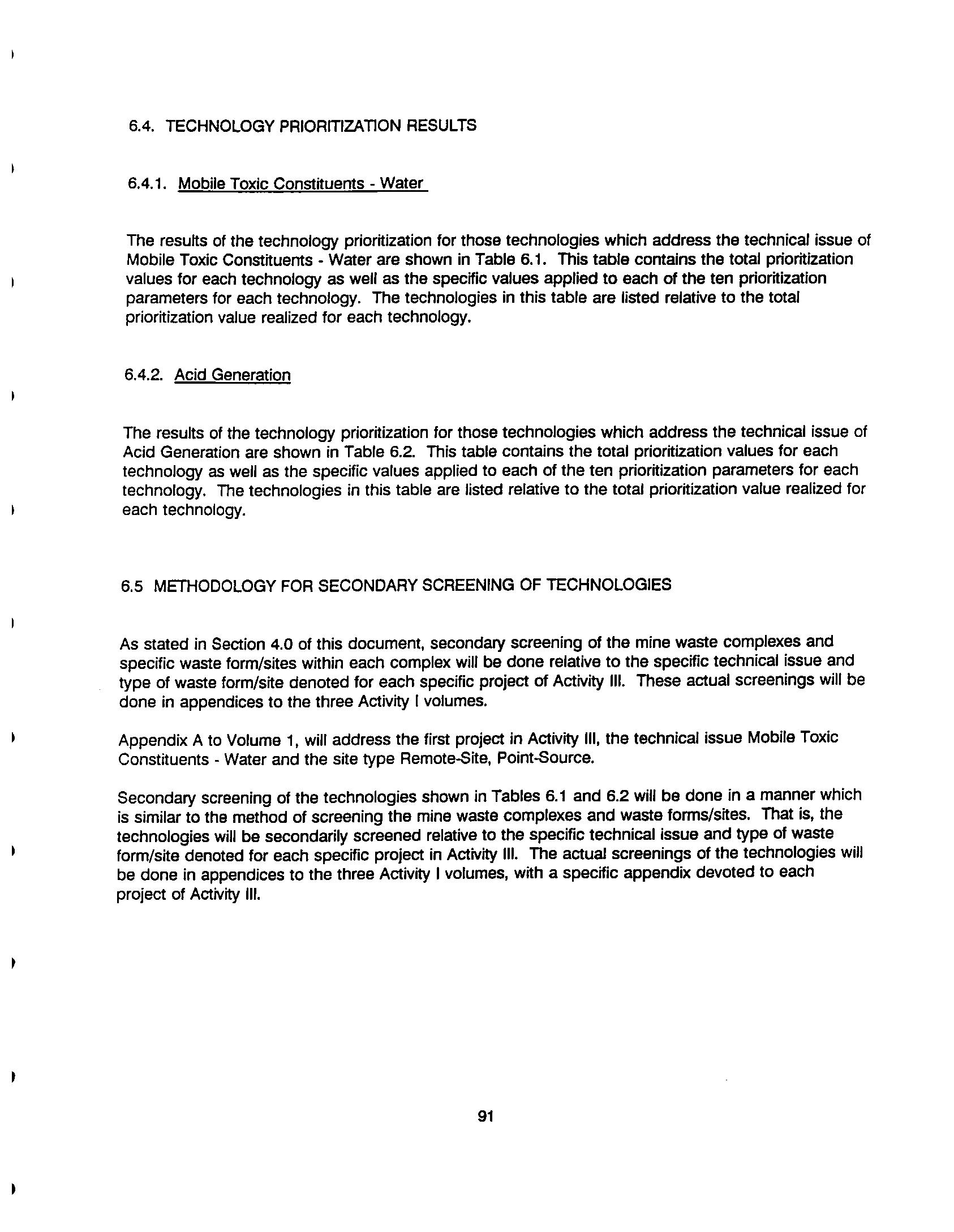 Mine Waste Pilot Program Activity 1 - Issues Identification and Mine Waste Pilot Activity 1 - Issues Identification and Technology Prioritization Report Technology Prioritization Report
