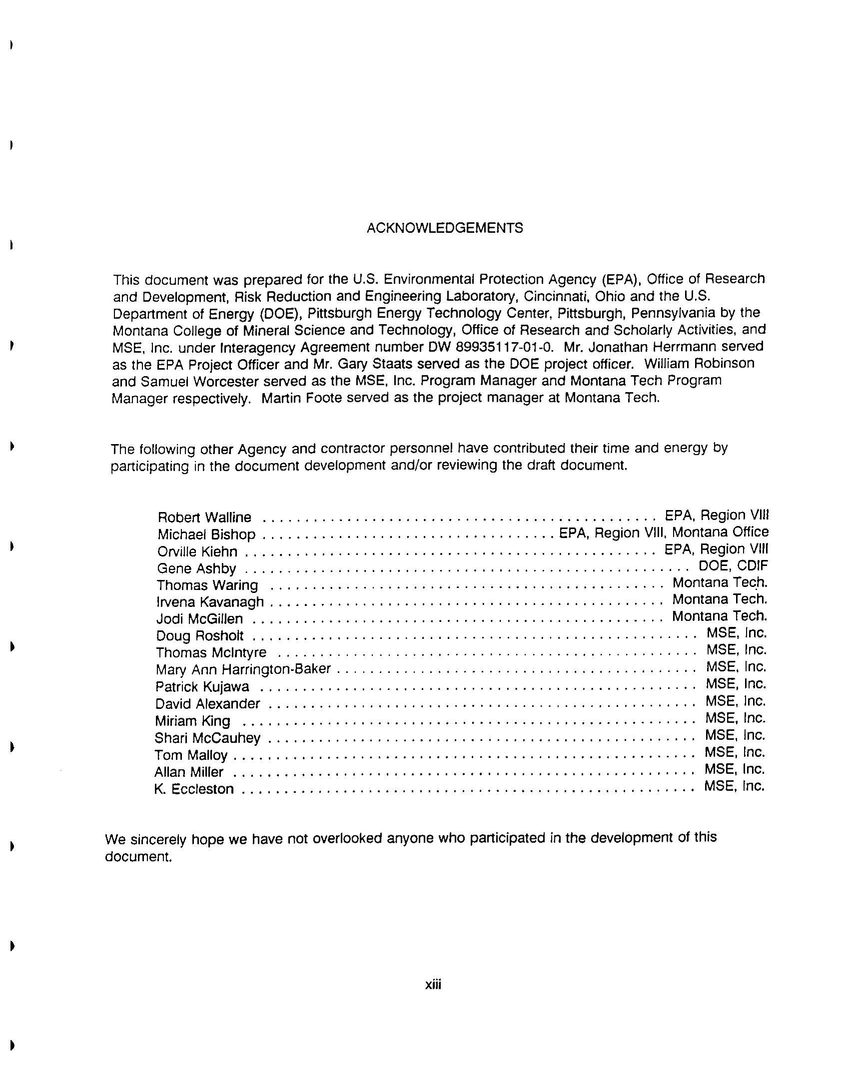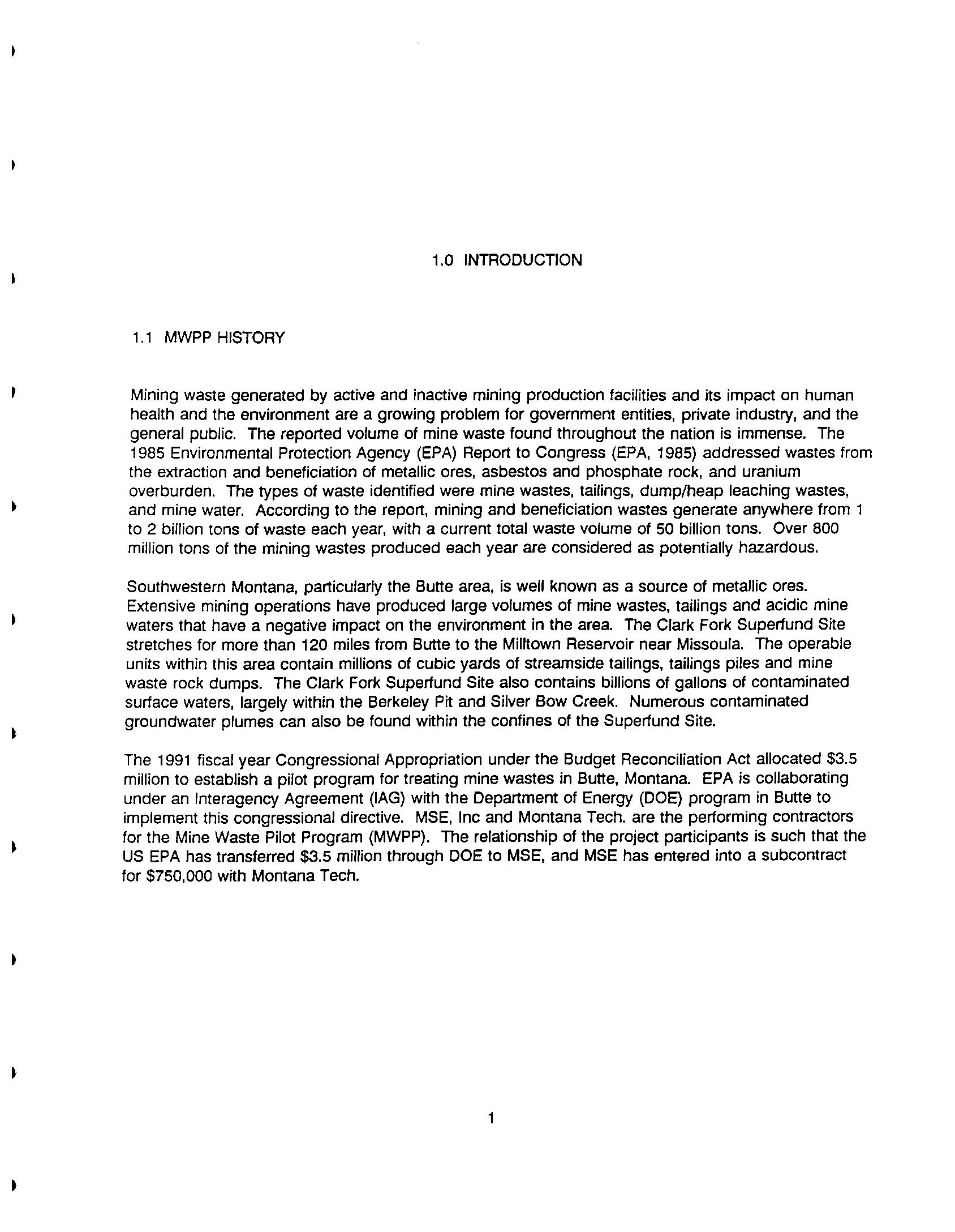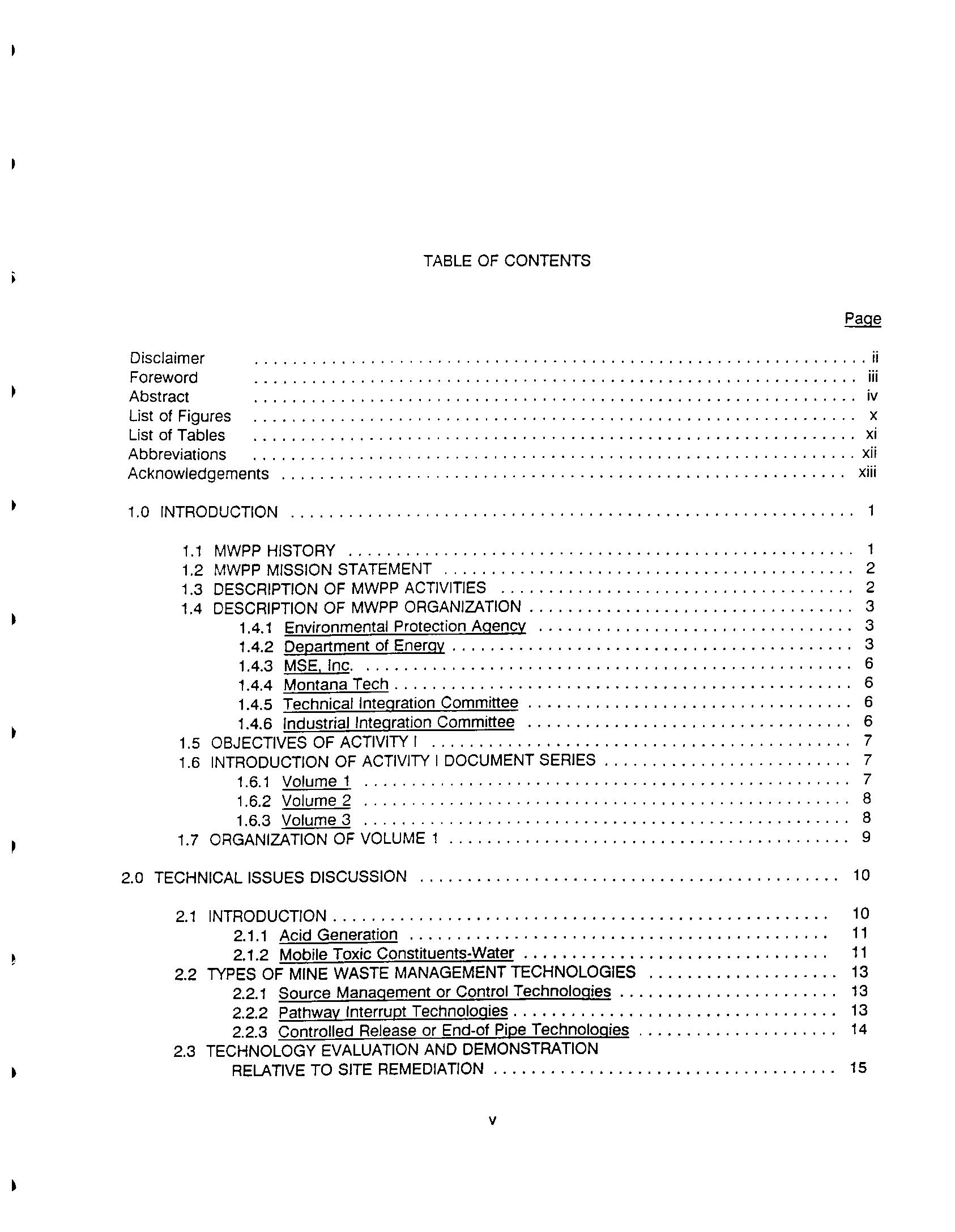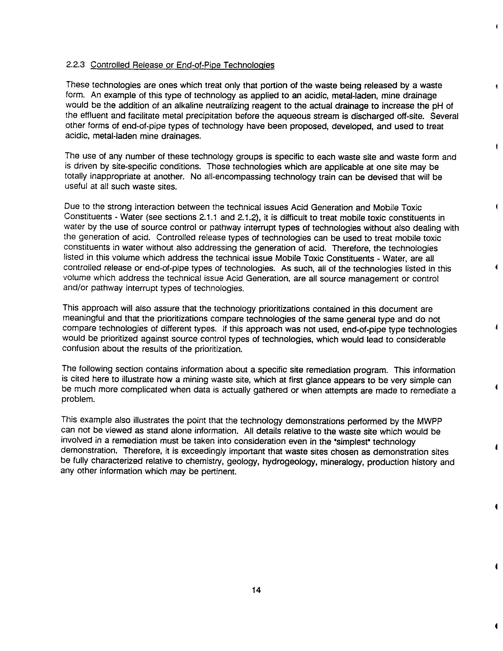Mine Waste Pilot Program Activity 1 - Issues Identification and Mine Waste Pilot Activity 1 - Issues Identification and Technology Prioritization Report Technology Prioritization Report