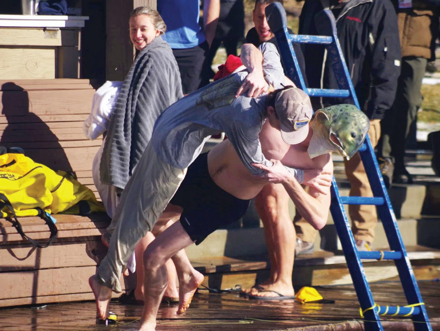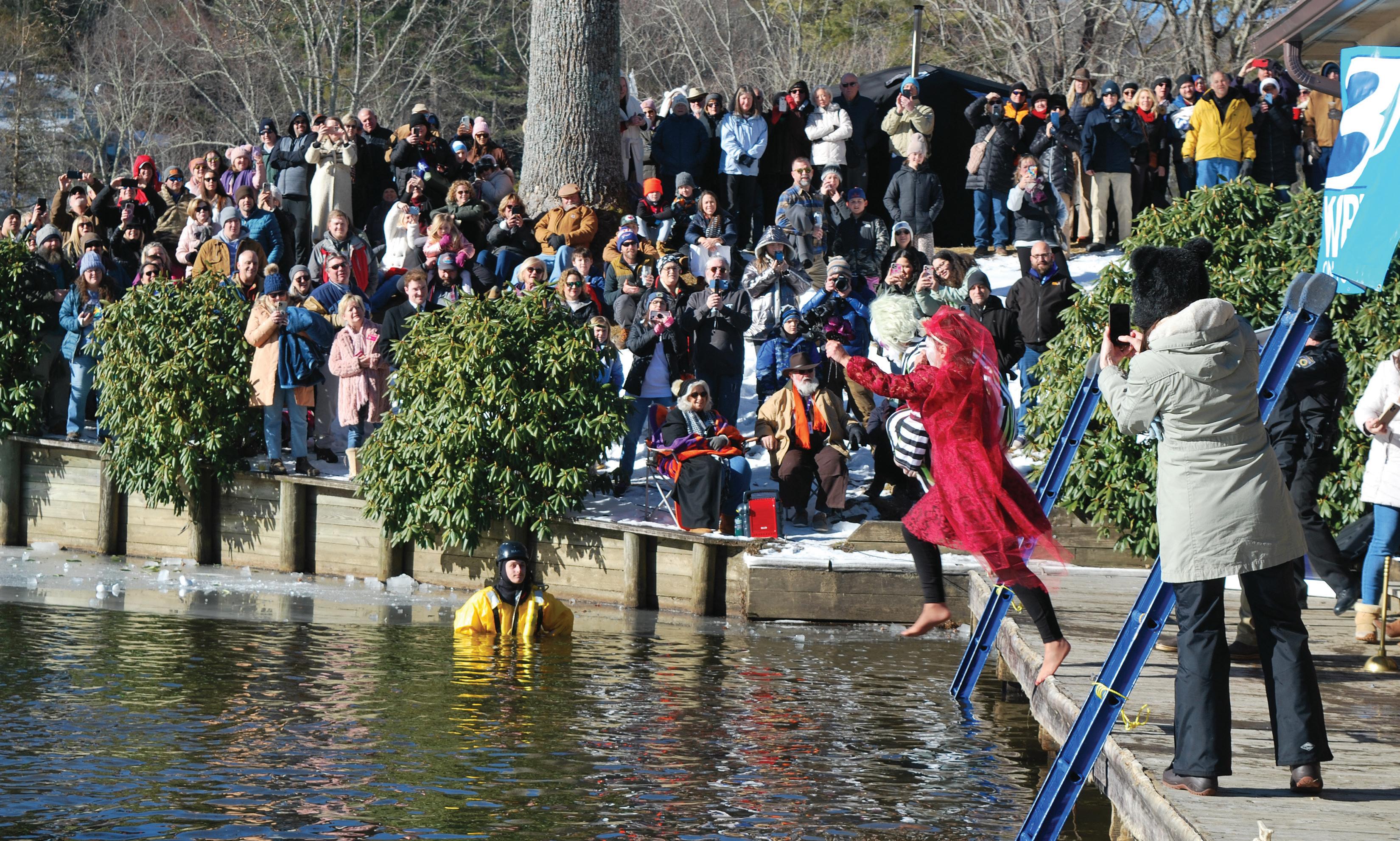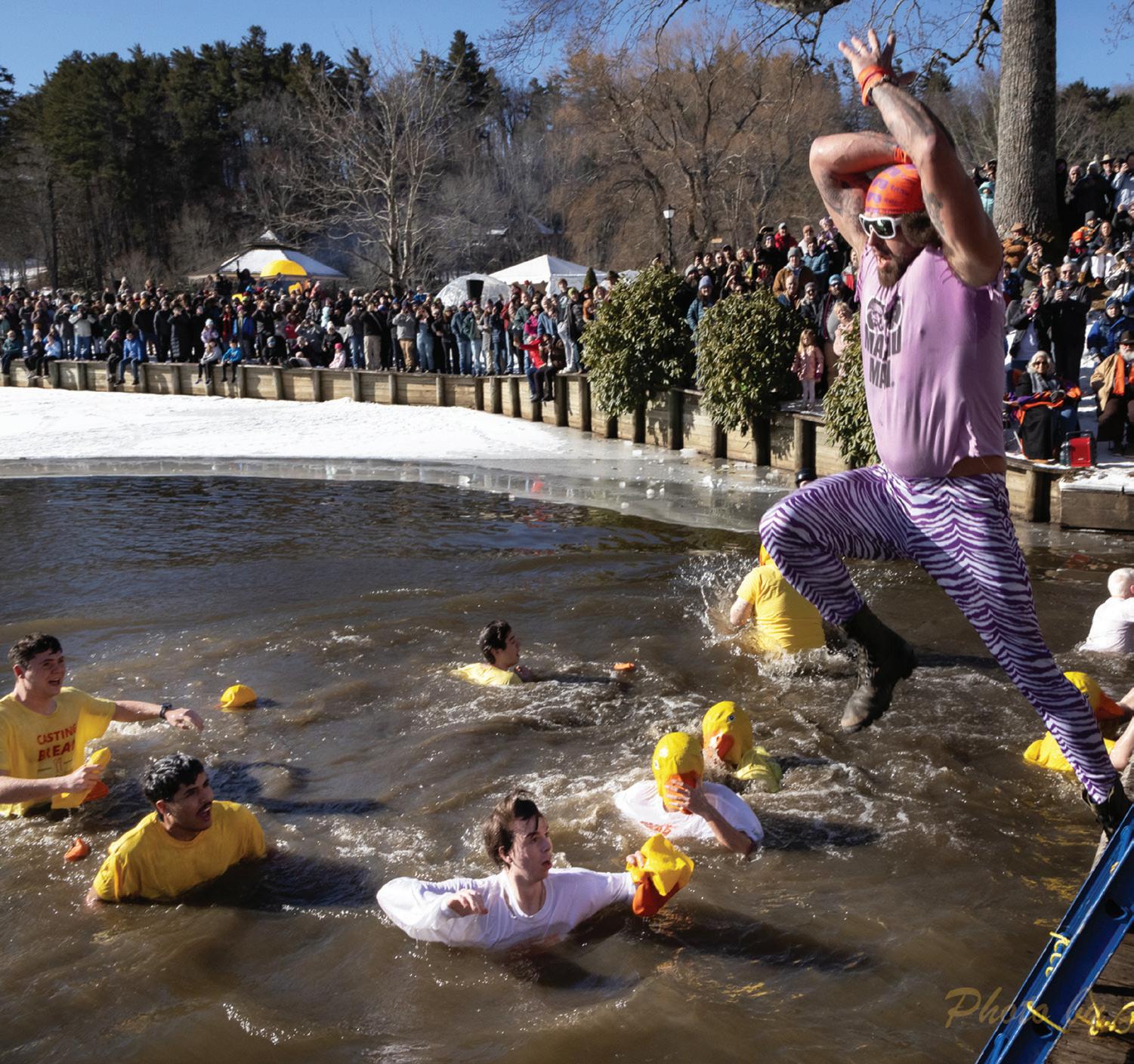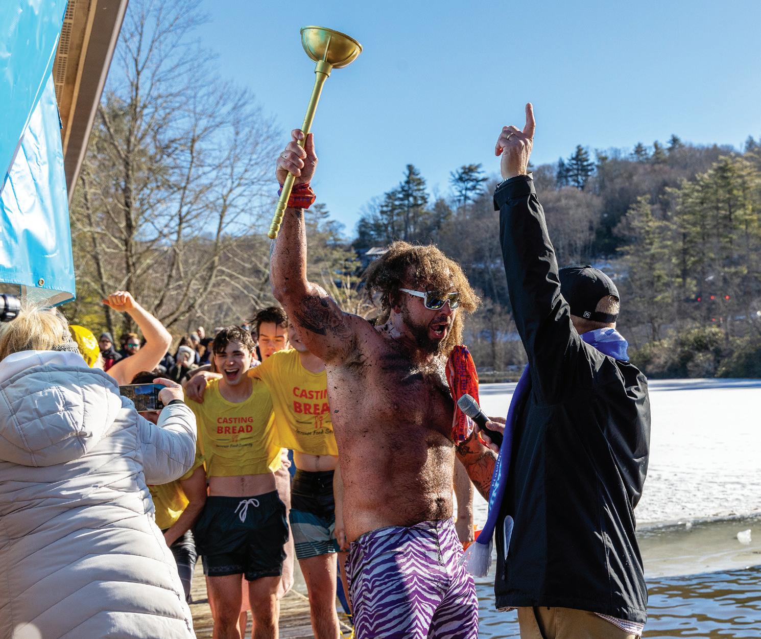 time.” Spectators gather around Chetola Lake to watch brave souls — competing individually or as part of a team — jump into the sometimes frozen lake. Plungers sport creative costumes for a chance to win the coveted Golden Plunger Award.