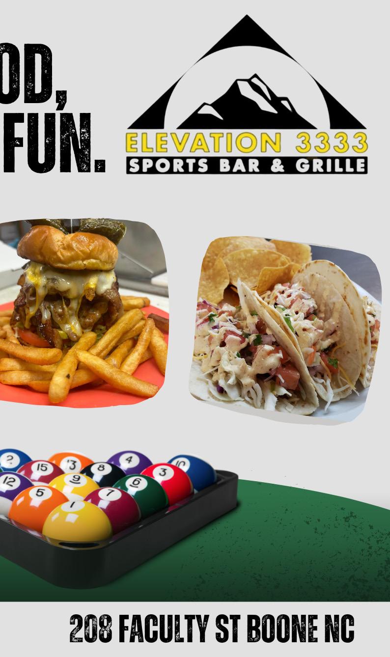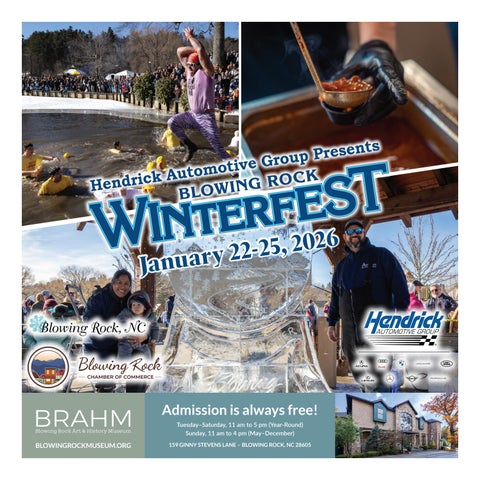 Editor’s Note: Due to the last minute postponement of some events to Jan. 30-31, some of the dates in later stories are no longer correct. The official calendar on Page 8 has been updated. Visit BlowingRockWinterFest.com for the most upto-date information. The print version of this guide was printed and distributed before the changes were announced.