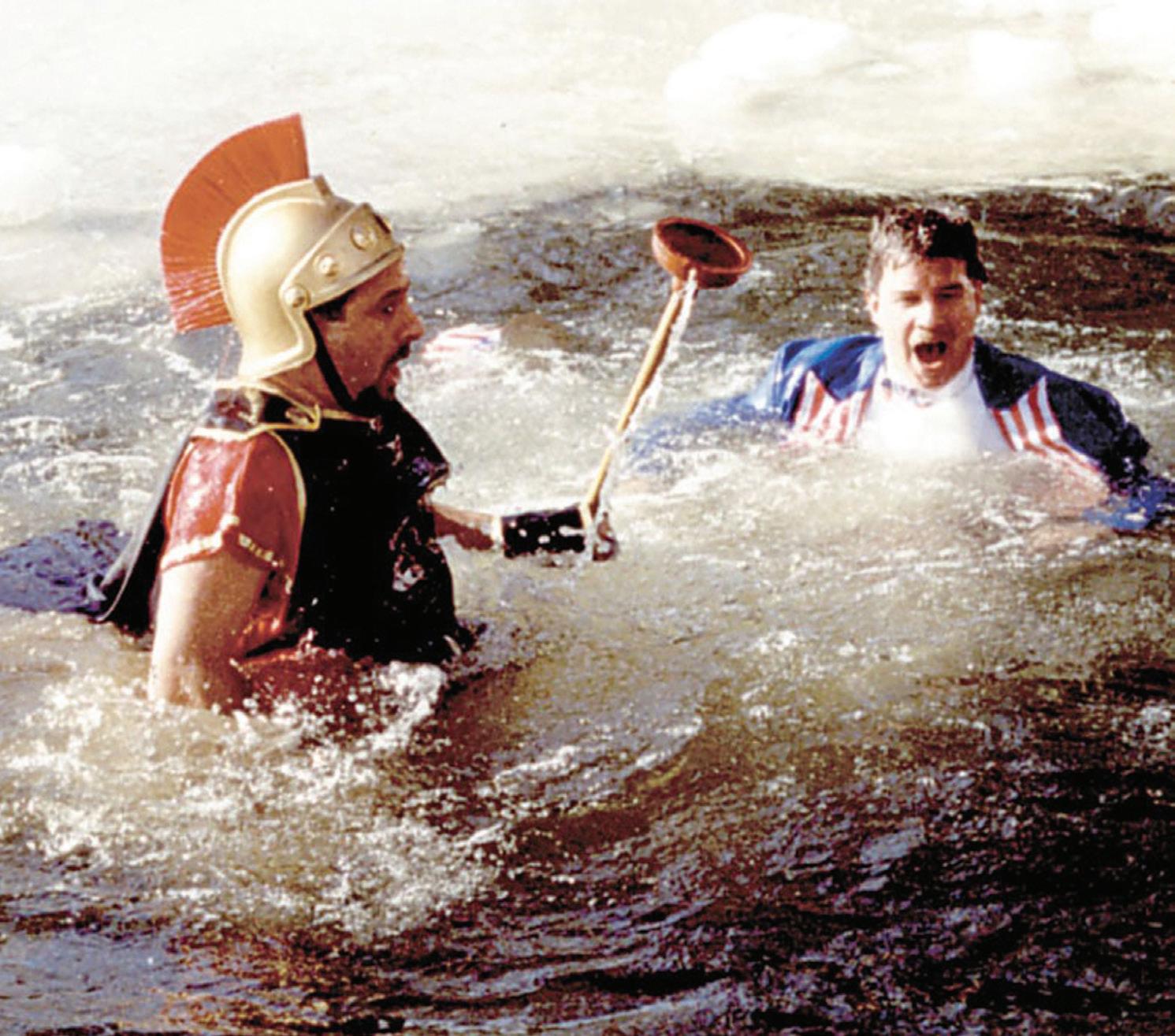 FILE PHOTO Jimmy Crippen and Kent Tarbutton in Chetola Lake after one of the early Polar Bear Plunges.