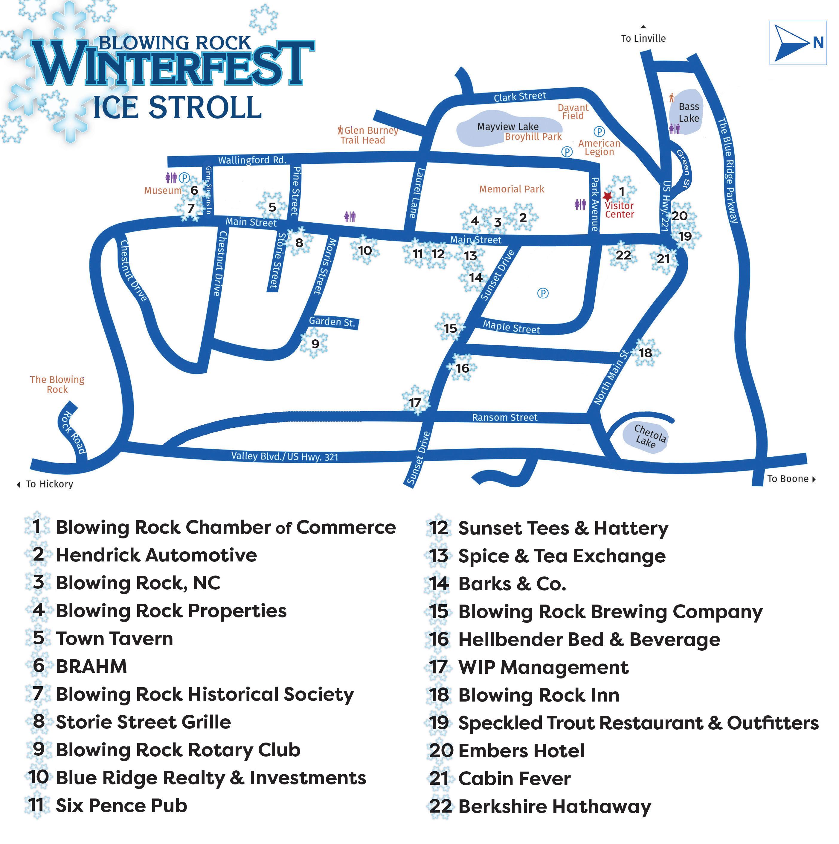 The WinterFest shuttle will go between Shoppes on the Parkway and Memorial Park. The shuttle is sponsored by the Blowing Rock Furniture Gallery and is free of charge.