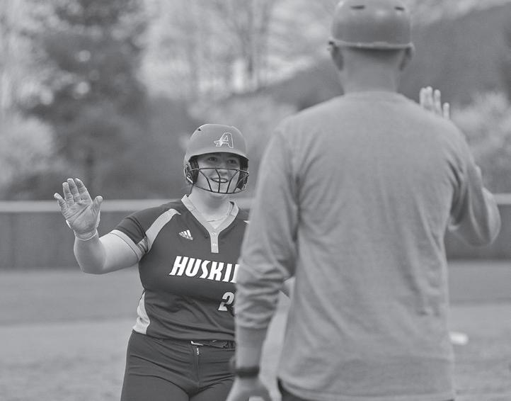 Ashe County softball player Maleah Lovell high fives head softball coach Justin Wood after one of the junior’s four home runs this spring.