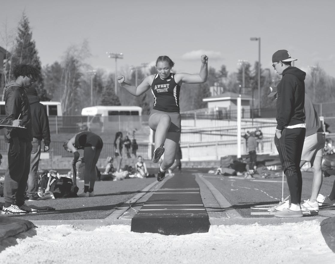 Avery County’s Sophianna Hield competes in the long jump during a track and field meet at Watauga High School.