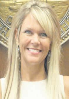 April Henderson is shown with one of her husband’s creations. She often helps paint the carvings.
