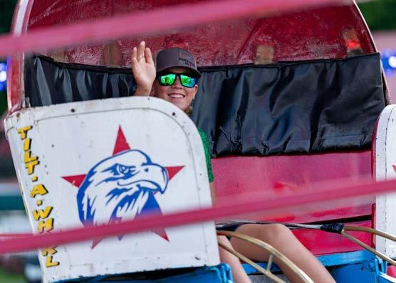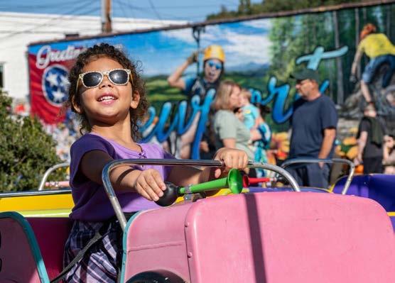 Coraline Stinson, 5, from Newport, is all smiles with her sun glasses on a bright beautiful sunny day enjoying the kids fun rides at the 38th annual Newport Harvest Street Festival in Newport, Tennessee Saturday, Oct. 4, 2025.