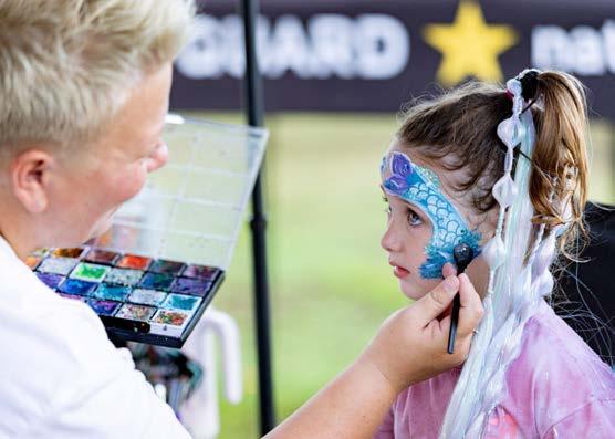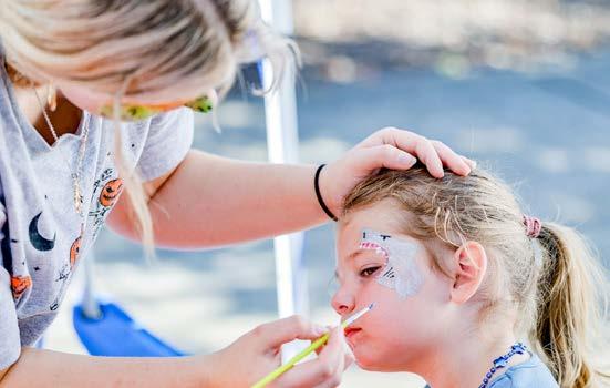 Savannah McGaha paints a shark on Dakota Strange, age 3, at the 38th Annual Newport Harvest Street Festival.