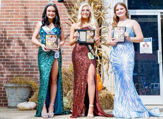 The 2025 Harvest Street Festival Miss Harvest Queen winners (left to right): First Alternate Hayden Graham, 2025 Miss Harvest Queen Sidney Spencer and Second Alternate Aaliyah Laws.