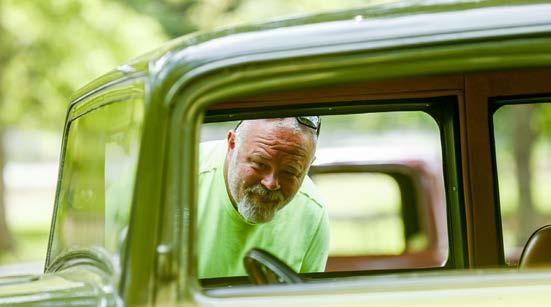Charlie Huffman from Newport looks inside the 1932 Ford Sedan at the Cruise Against Cancer at the Newport City Park.