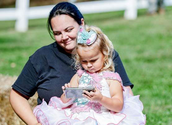 Kendra Scarborough watches her daughter Jade Scarborough play on her phone prior to her pageant at the Annual Parrottsville Heritage Days at Parrott-LaRueMyers Park in Parrottsville.