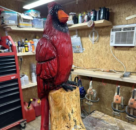 Cardinals are popular creations. Eric Henderson carved this cardinal on a log.