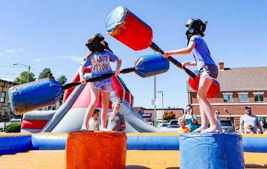 Cenzlee Howington, 7, and Carsie Howington, 9, battle it out with the pugil sticks in the kid zone at the 38th annual Newport Harvest Street Festival.