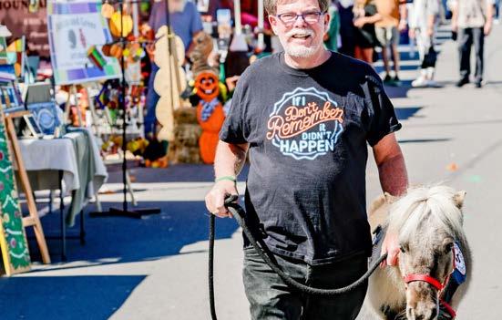 Mike Strobel is shown walking Sammy the Pony around town during the Newport Harvest Street Festival.