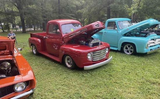 Cars in a variety of colors with various accessories were displayed during a recent Moonshine Rod Run.