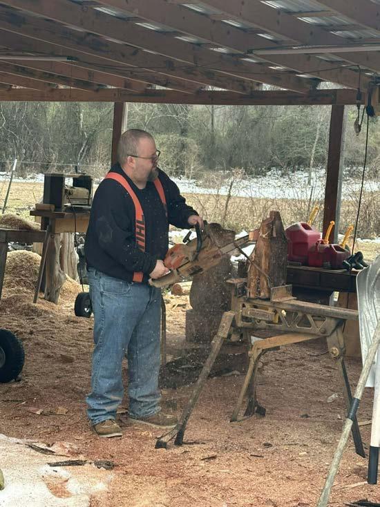 “I have had some close calls,” he said. “It is very easy to get injured while carving. I always wear safety glasses and the proper clothing. I also protect my ears. Without earplugs and safety glasses I could very easily suffer eye injuries or hearing loss.