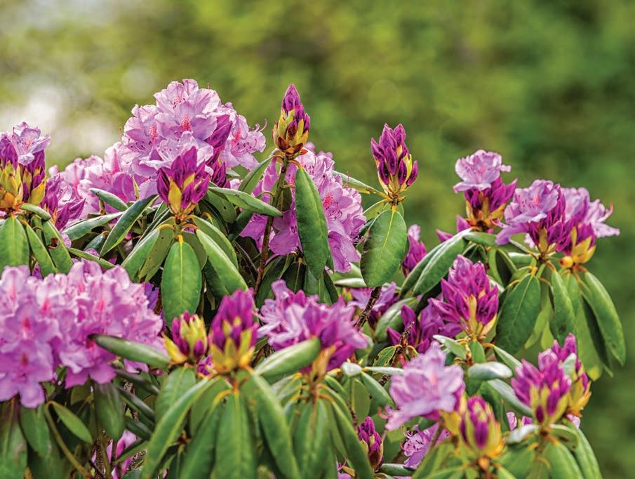 “A lot of the rhododendrons we have are hybrids, but we do have catawbiense, punctatum and max, which are all found in native stands,” he says. “They can either be, with permission, dug in those places, or the seed can be collected, and they can germinate the seed and grow them from that. There’s a couple of nurseries around here that do have native landscape and will sell the punctatum, flame and vaseyi,” he says.
