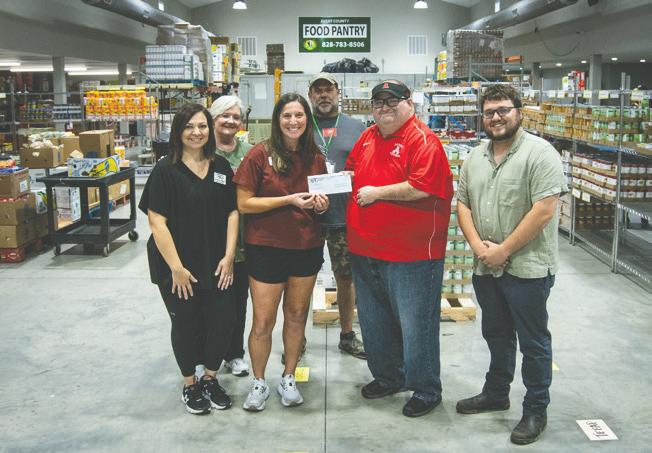 Journal-Times Editor Jamie Shell and Mountain Times Publications Executive Editor Moss Brennan visit Feeding Avery Families on August 22 to present a $5,000 check to area nonpro t Feeding Avery Families Executive Director Bonnie Clark and sta members including Vanessa Phillips and Cindy Reed.