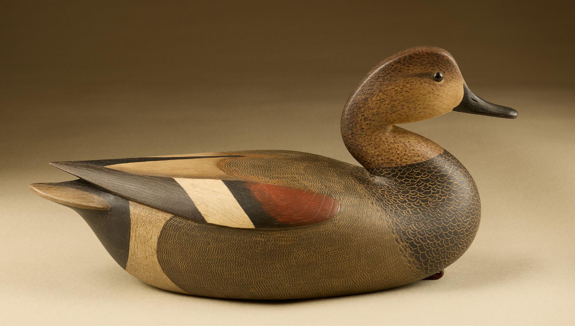 “Cameron McIntyre is without a doubt one of the most talented decoy makers of his generation, and his carvings have a particular appeal to those who collect vintage hunting decoys. As a passionate duck hunter and an enthusiastic collector in his own right, Cameron is well versed in both the functionality of hunting decoys and the artistic appeal of vintage birds. He has an innate ability to borrow from the influences of decoys of an earlier period, freely combining the elements of form and paint from the classic carvers of earlier generations to create a vintage decoy from something that only previously existed in his imagination. And yet he is just as capable of producing a decorative carving that rivals any, using only traditional tools. His approach to decoy making in many ways is both spiritual and romantic, as he has tightly woven his interpretations of contemporary decoys with the traditions and gunning lore of its not-too-distant past, while adding an aesthetic flair that raised them to the level of art”