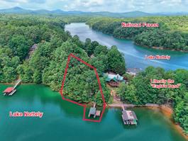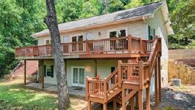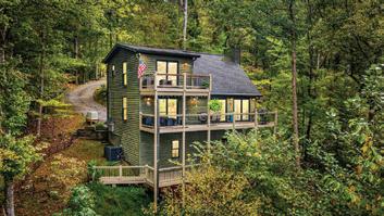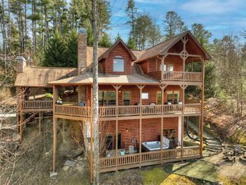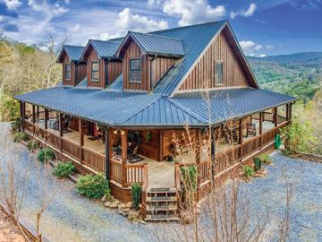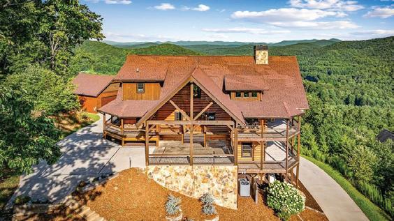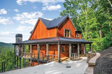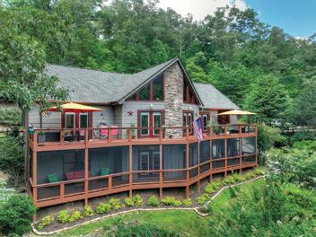 land with a bubbly mountain stream and frontage of US Forest Service land. This expansive craftsman-style home features mountain views and direct access to Lake Nottely via a short walk through the US Forest Service. The residence boasts 5 bedroom suites all on the main floor including a large master suite. $1,399,000. MLS: 416036