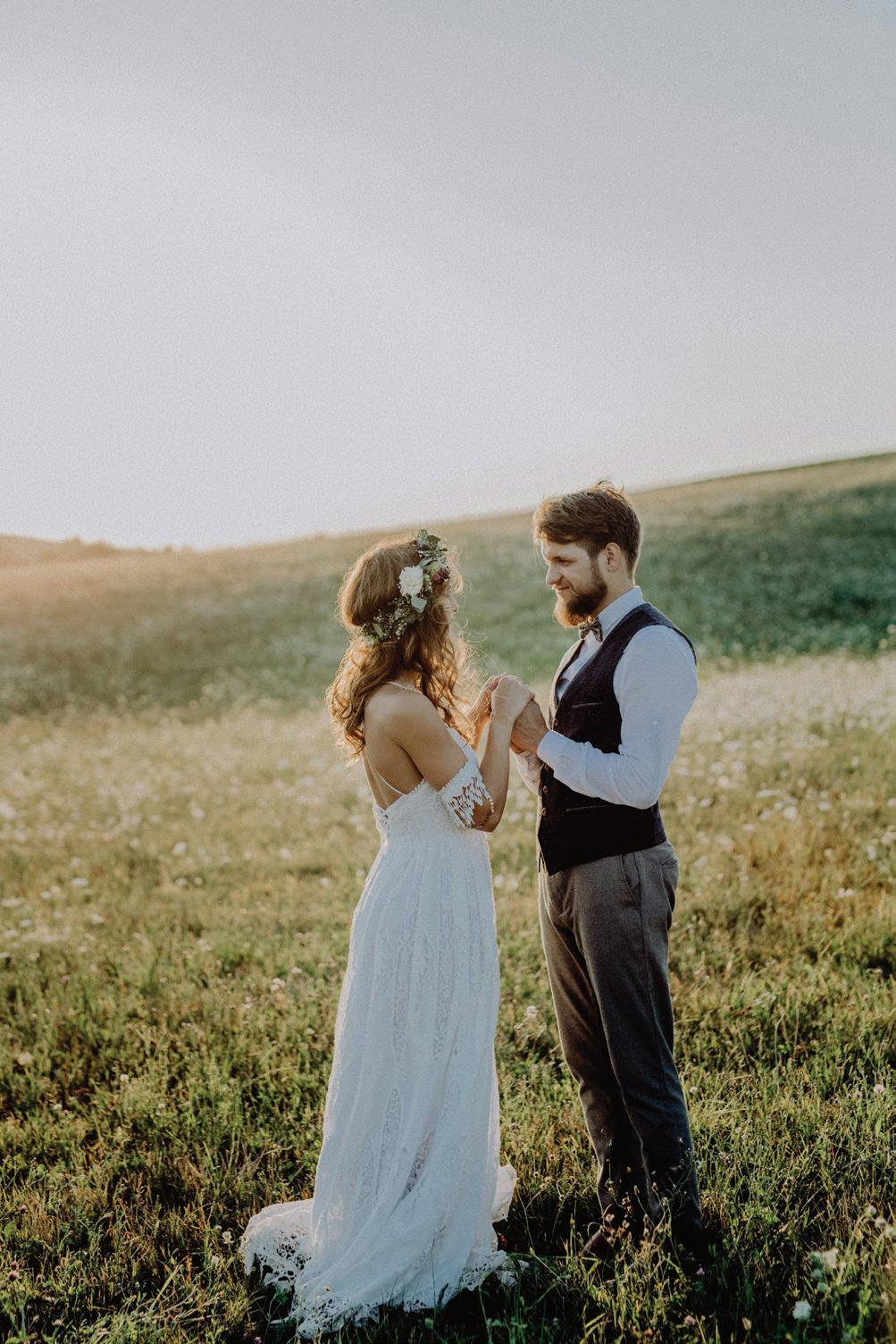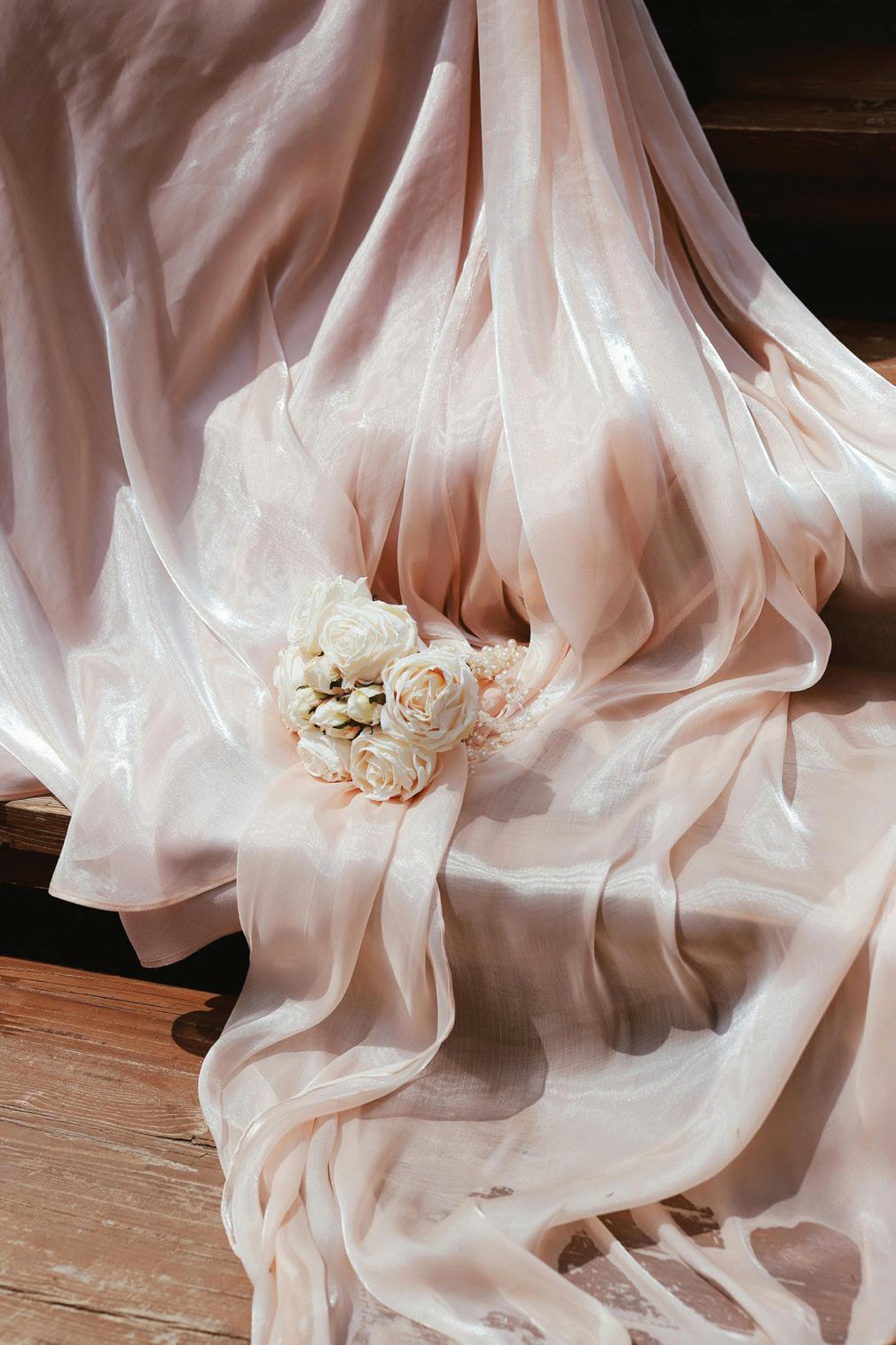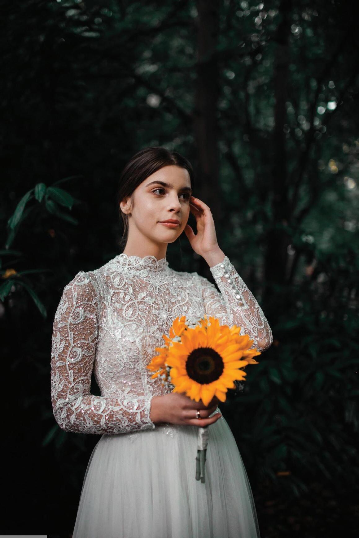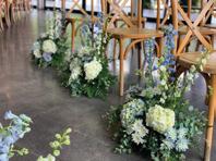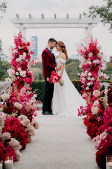 Wearable bouquets styled as bags or clutches is a new trend for 2026. Flowers looped around wrists or shoulders with cascading and dripping flora and fauna, are making their way down the aisle.