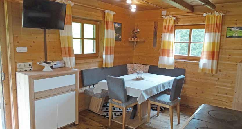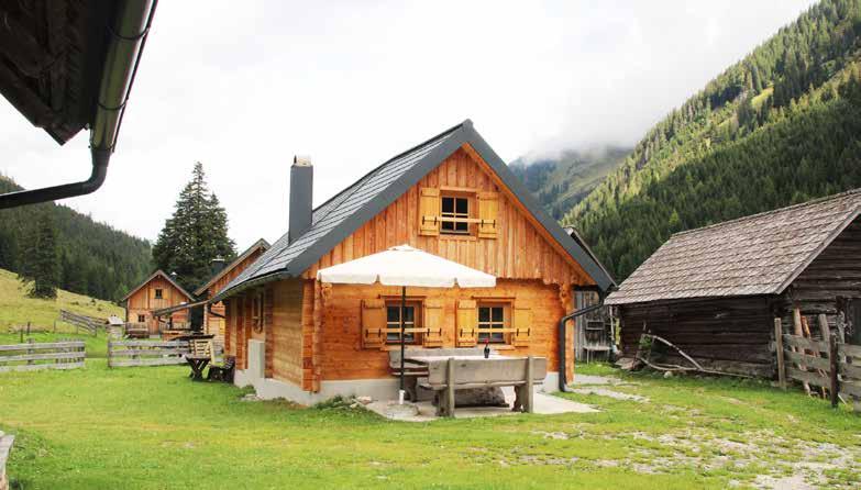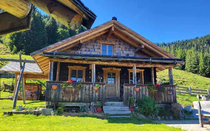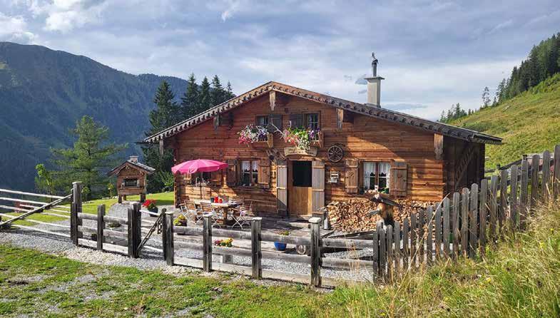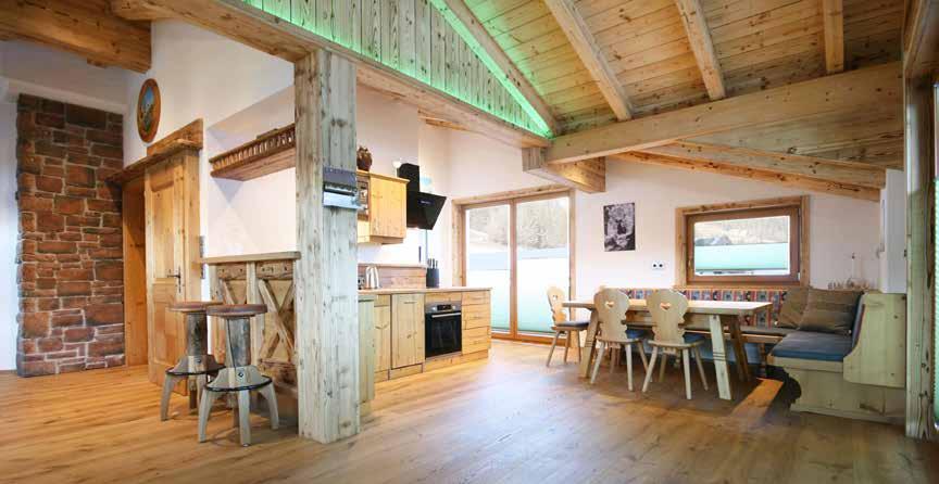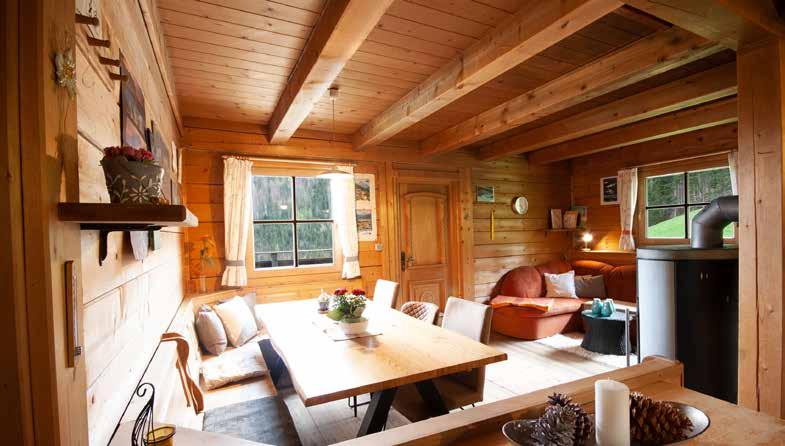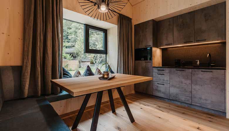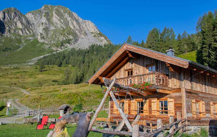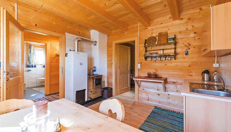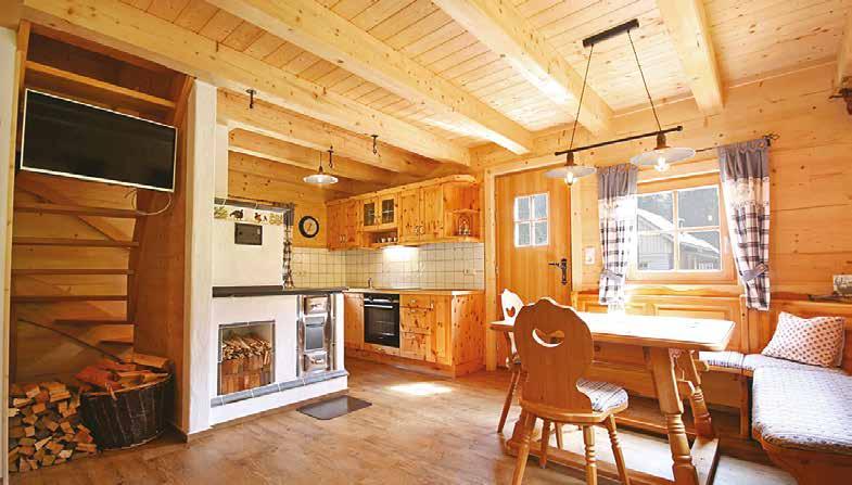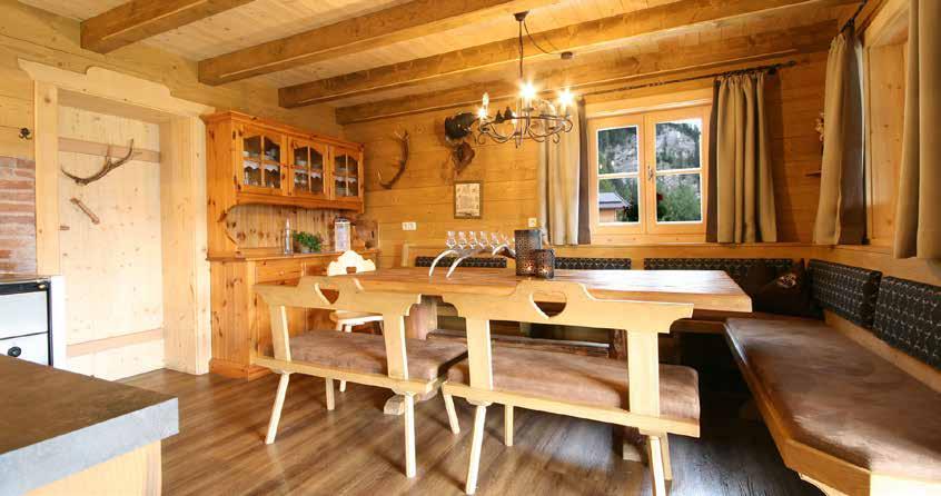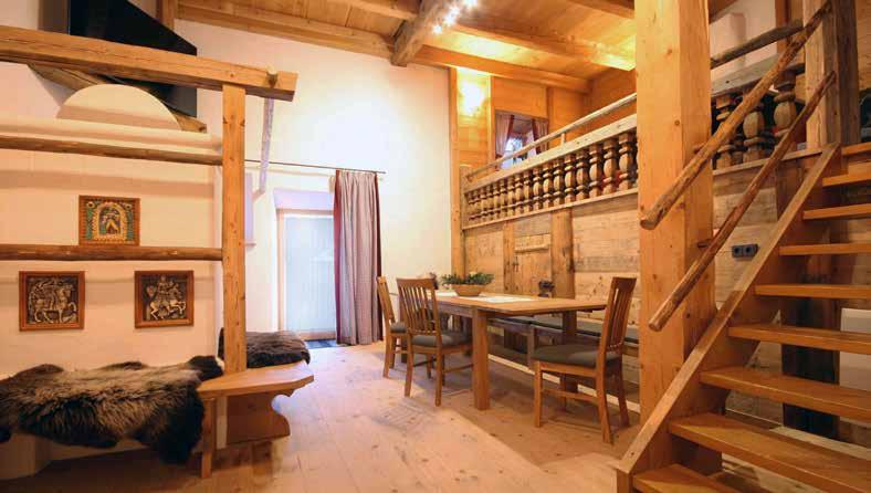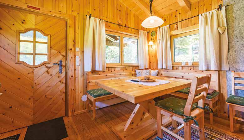Almhütte zugänglich sind. In den Wohneinheiten wurde viel heimisches Holz verarbeitet und auf der Galerie befindet sich das Doppelbett. Ein weitläufiger Balkon mit Blick ins Naturparadies ist das Tüpfelchen auf dem „i“. Kulinarik wird im Restaurant großgeschrieben. Die Hüttenwirte persönlich servieren die regionalen