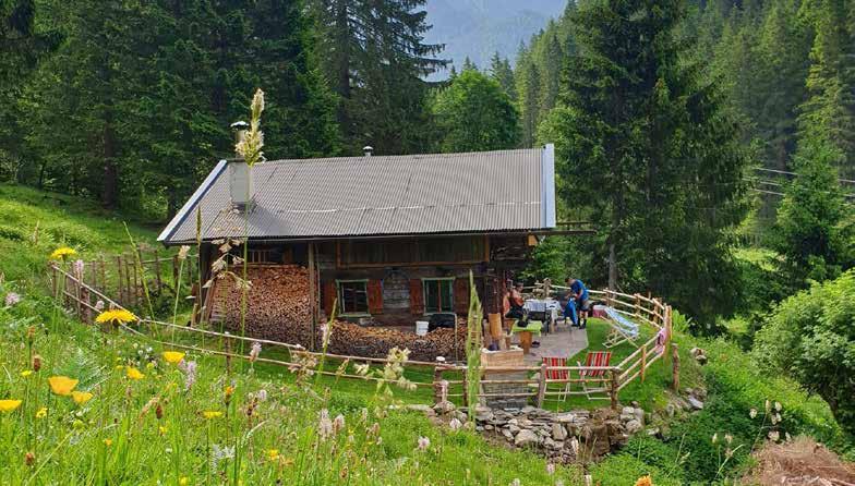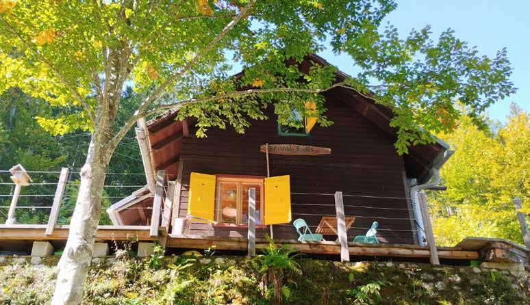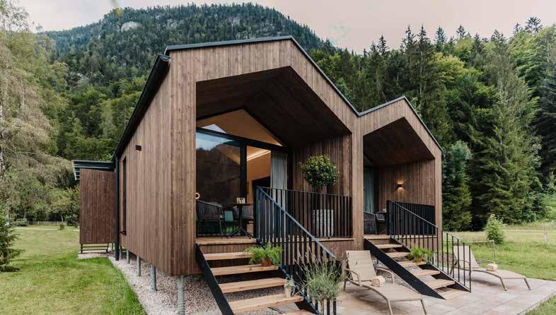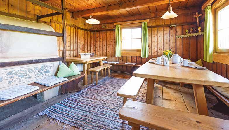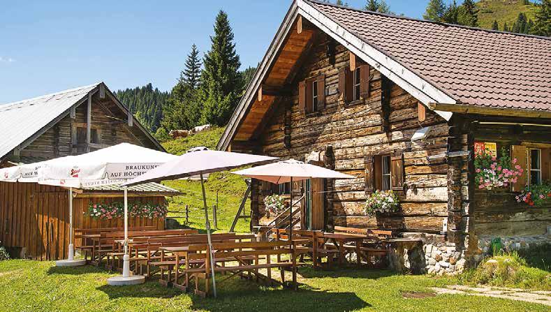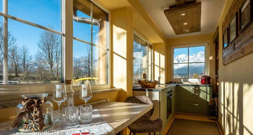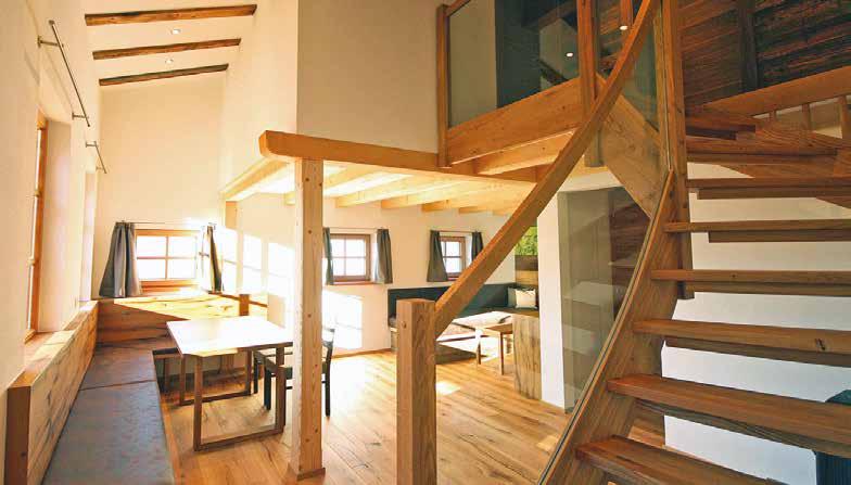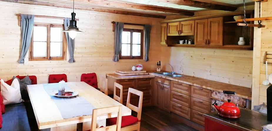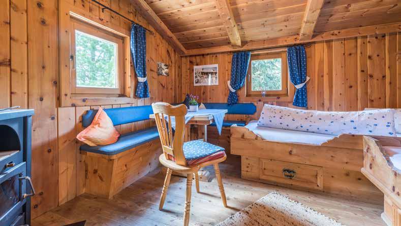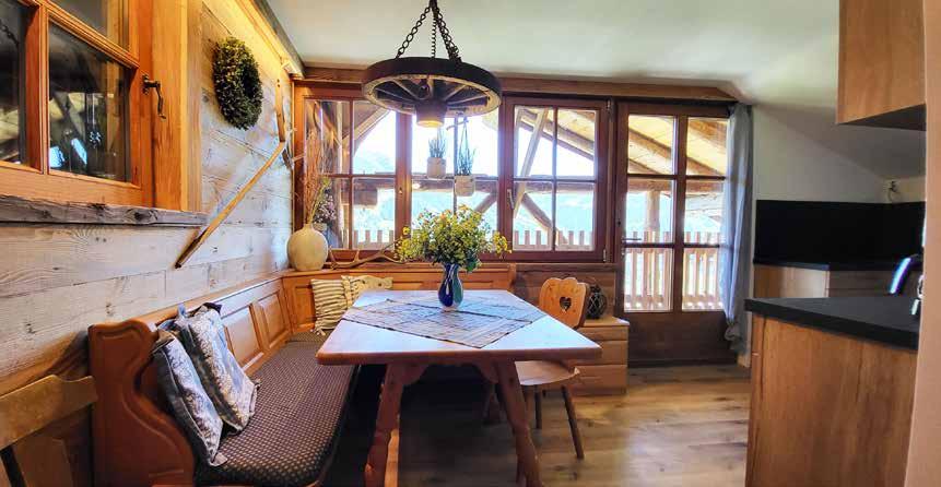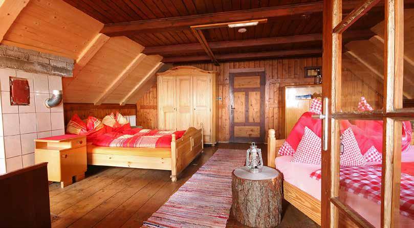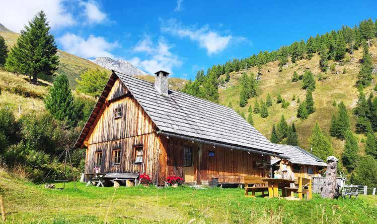 Almhütte zugänglich sind. In den Wohneinheiten wurde viel heimisches Holz verarbeitet und auf der Galerie befindet sich das Doppelbett. Ein weitläufiger Balkon mit Blick ins Naturparadies ist das Tüpfelchen auf dem „i“. Kulinarik wird im Restaurant großgeschrieben. Die Hüttenwirte persönlich servieren die regionalen