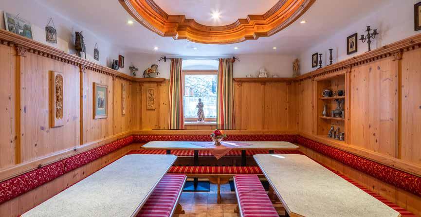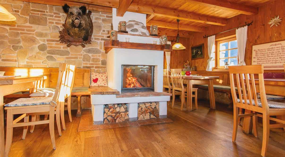 Köstlichkeiten mit mediterranen, Ladinischen und Tiroler Einflüssen. Die beiden gemütlichen Holzstuben, eine davon mit Kachelofen, sind ein Ort des Genusses und der Begegnung.