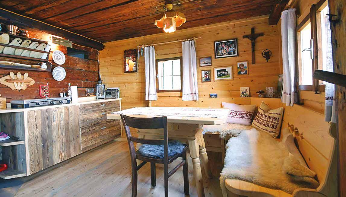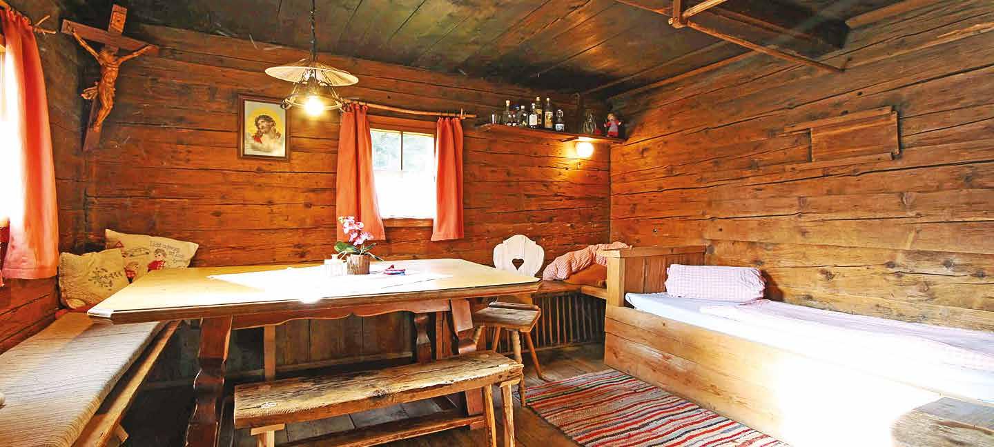 Tauern kann man hier tatsächlich noch Natur pur erleben. Die Hütte wurde mit viel Liebe renoviert, hat aber dadurch nichts von ihrer Originalität und Ursprünglichkeit verloren. Die Anreise erfolgt über einen befestigten Forstweg zum gesicherten Parkplatz (€ 5,00/Tag). Hier muss man sein Auto abstellen. Danach sind es noch ca. 5 km bis zur Hütte. Der Vermieter