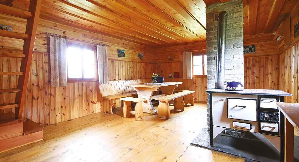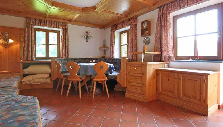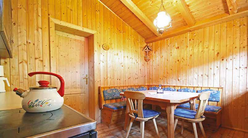 Ausstattung: Erdgeschoss: Große Stube mit Esstisch und Couchecke, Küchenzeile: 4-Platten Gasherd, Backrohr, Kühlschrank, Gefriertruhe, Kaffeemaschine, kleines Badezimmer mit Dusche, Waschbecken und WC Obergeschoss (Holztreppe): 2 Vierbettzimmer mit je 2 Doppelbetten (eines davon mit Dachschräge)