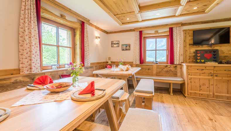 wahres Panorama-Kino. Ein besonderes Erlebnis ist es auch, wenn in der Abenddämmerung das Rotwild vor der Hütte herumstreift. Die bewirtschaftete Almhütte des Vermieters ist nur wenige Meter entfernt und verwöhnt mit Pinzgauer Köstlichkeiten - Ideal für alle Naturfreunde die mit „kleinem“ Rucksack verreisen. Im Winter fährst du mit dem Auto ca. 5 km