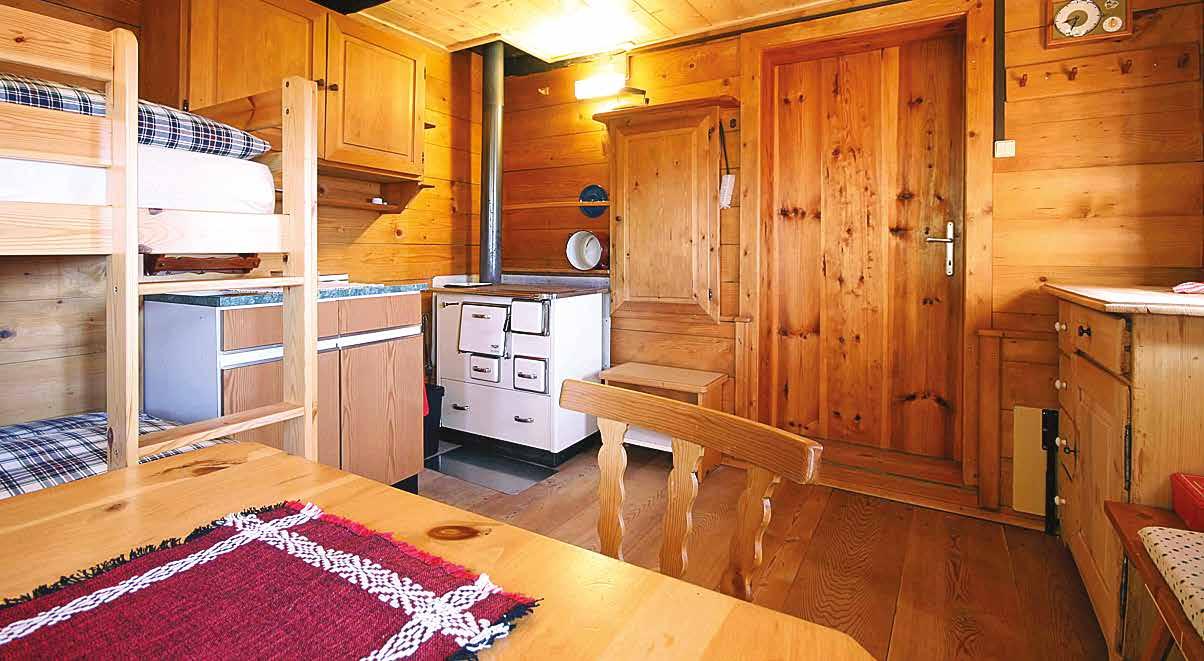 trennten Betten, das renovierte WC befindet sich an der Seite der Hütte und ist von außen zugänglich.