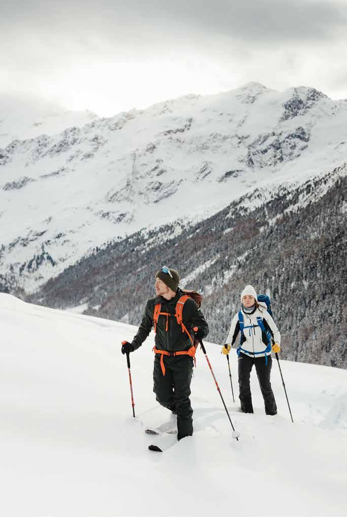 unterwegs und kannst die Abfahrt durch tief verschneite Pulverschneehänge vollends genießen. Und dabei möglichst wenig Spuren in der Natur hinterlassen.