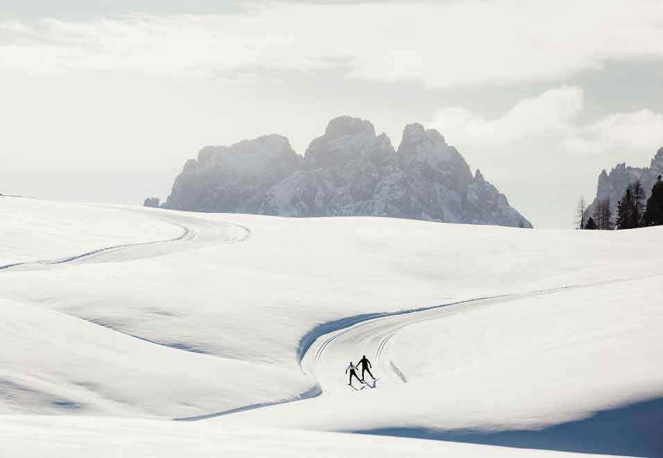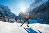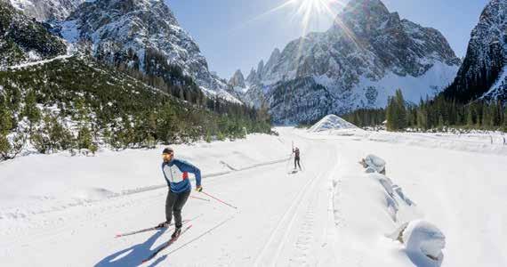 3-Zinnen-Panorama. Und für alle, die Lust auf Extra-Motivation haben, wartet die sportliche Herausforderung des „Nordic Hero“: Wer alle fünf Blockbuster-Touren meistert, wird belohnt! Ancora di più – die Dolomitenregion 3 Zinnen kann noch mehr: Als Teil des Verbunds Dolomiti NordicSki – dem größten Langlaufkarussell Europas –erweitert sich dein Revier rund um die Drei Zinnen auf sagenhafte 700 Loipenkilometer in 8 Regionen. Mit nur einem Loipenpass. Ob sportlich, entspannt oder mit der ganzen Familie – die Dolomitenregion vereint alpinen Winterzauber, perfekt gepflegte Loipen und echte Gastfreundschaft zu einem unvergesslichen Langlaufurlaub.