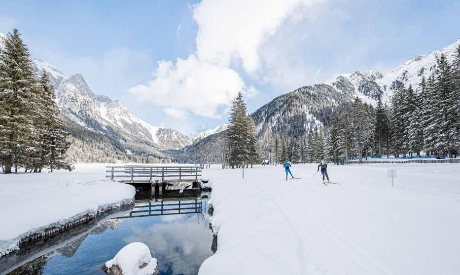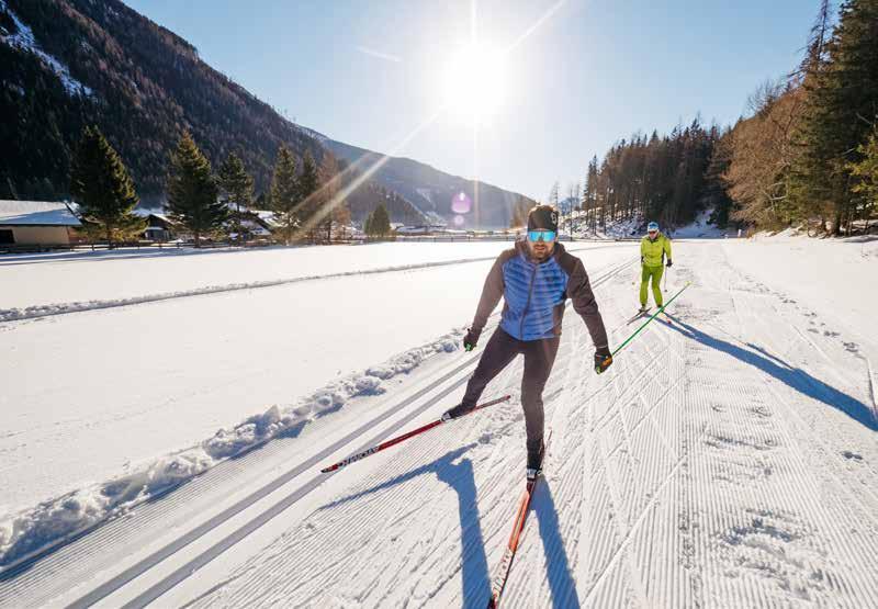 Ein Highlight ist die Nordic Arena in Toblach, eines der größten Langlaufzentren im Alpenraum. Hier starten alle Loipen direkt im Stadion – bestens geeignet sowohl für
