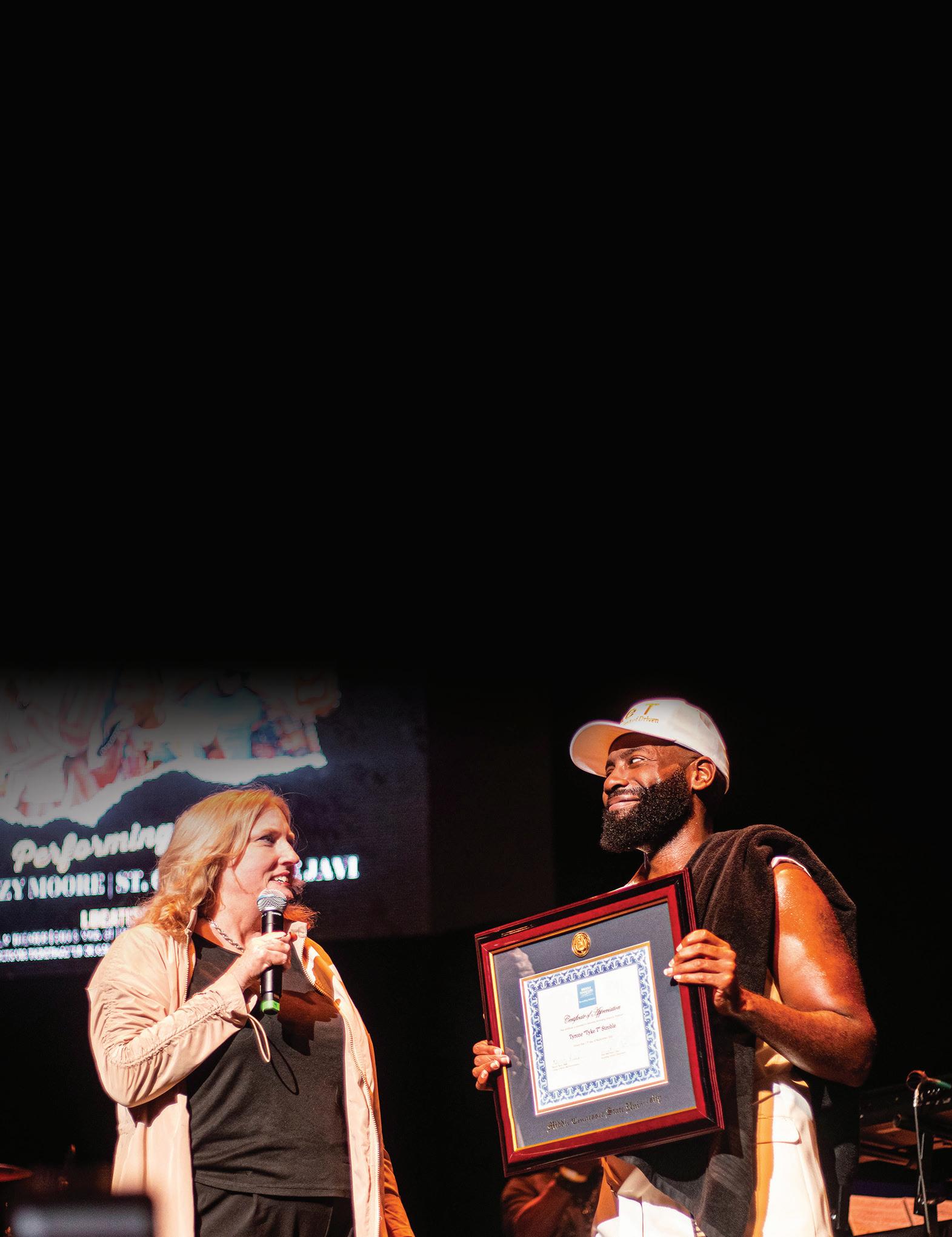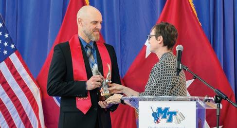 Since 1960, the MTSU Alumni Association has recognized accomplished alumni with association honors. A 2023 True Blue Citation of Distinction was awarded to William “Bill” Crabtree (’90) of Crossville, an MTSU Recording Industry professor, who was honored for Achievement in Education (MTSU faculty). And the 2023 Young Alumni Achievement Award, given to a graduate age 35 or younger making a positive impact in the world, went to Justin Hart (’11), an award-winning television producer from Memphis.