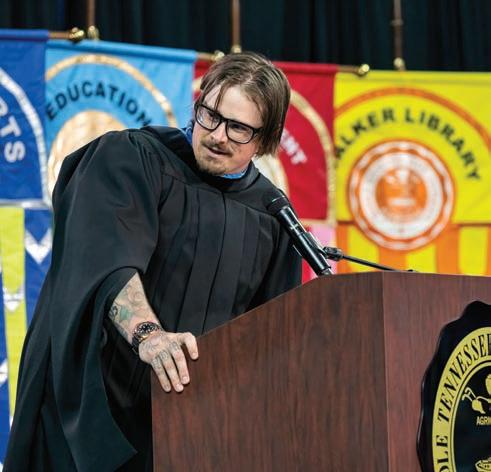 Big Loud Records songwriter and country artist HARDY (’13) soared to new heights in 2023 with the release of his critically acclaimed half-country, half-rock sophomore album The Mockingbird & the Crow, adding to 4 billion career streams. The artist, whose given name is Michael Hardy, is a five-time Academy of Country Music award winner, two-time Country Music Association award winner, and the 2022 BMI Country Songwriter of the Year. HARDY has written 15 No. 1 singles. Boasting a Recording Industry degree from the Commercial Songwriting program, HARDY spoke at one of MTSU’s graduation ceremonies this spring. HARDY, who at 33 is believed to be the University’s youngest alumnus to return as a Commencement speaker, told graduates, “Don’t be afraid to say yes to an opportunity just because you don’t think you will see an immediate result. You never know where your successes will come from. . . . Take a chance on yourself.”