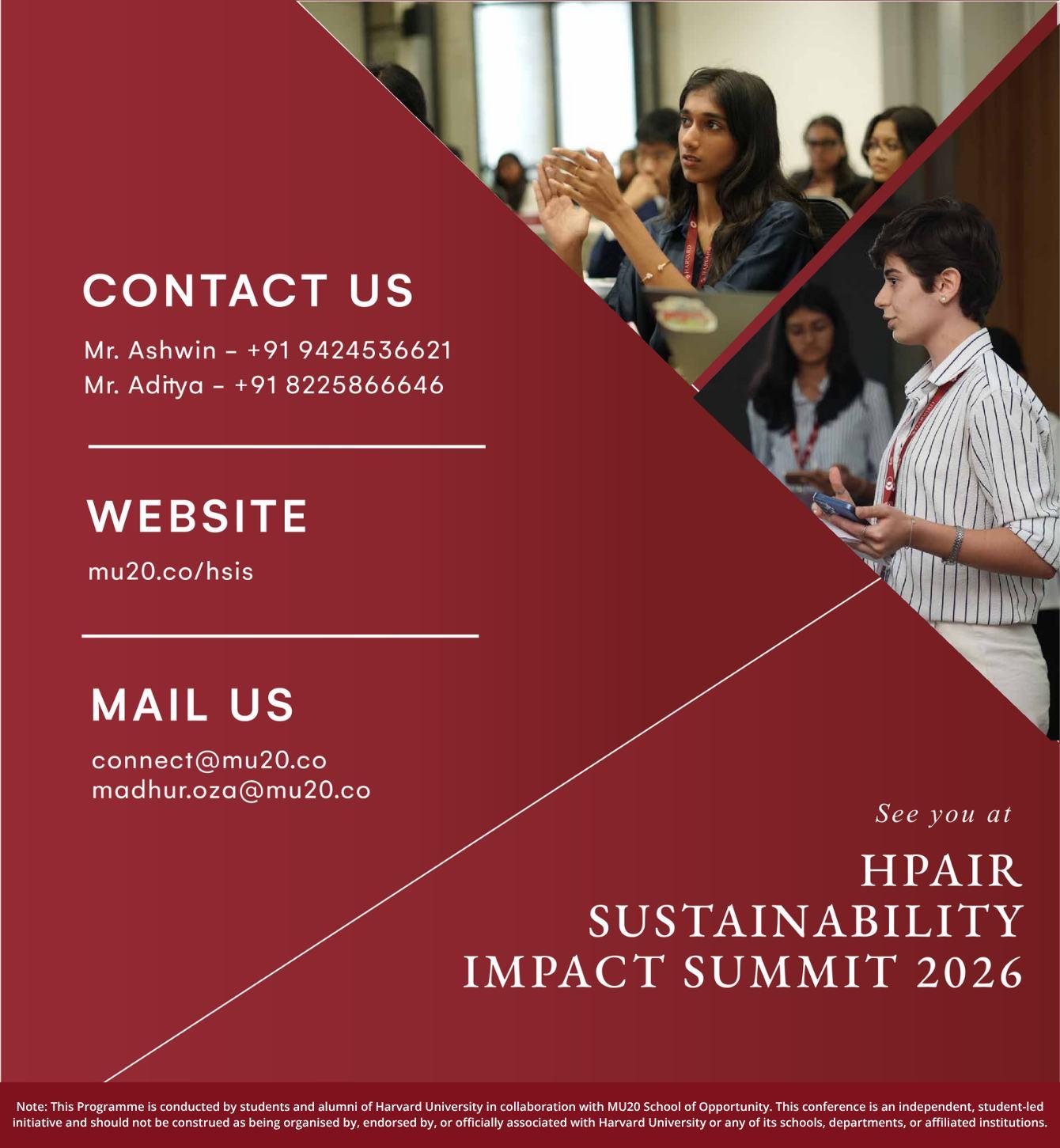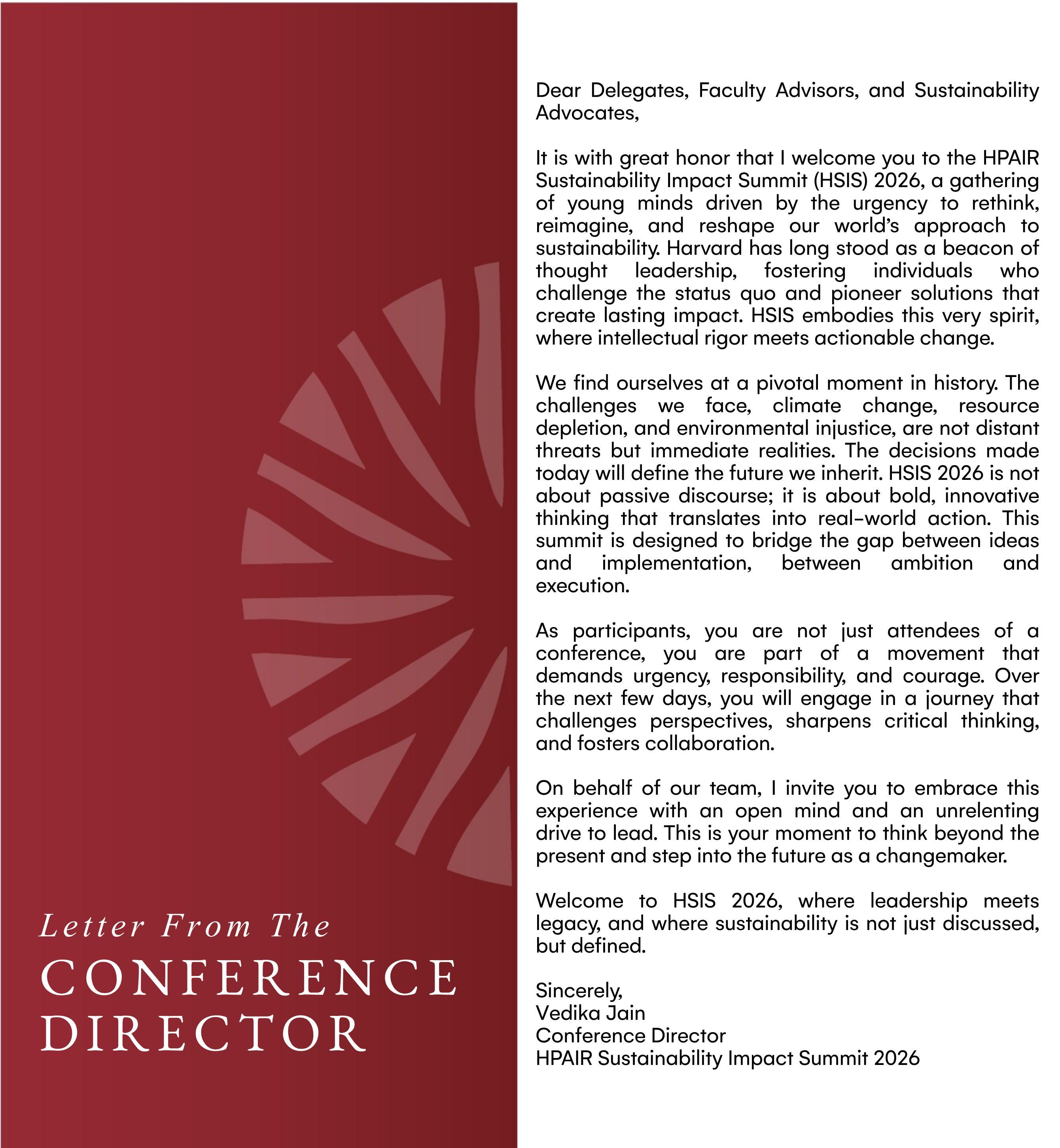 The HPAIR Sustainability Impact Summit (HSIS) 2026 is a three-day sustainability and policy-making challenge for high school students, hosted by MU20 School of Opportunity in partnership with the Harvard Project for Asian and International Relations (HPAIR).