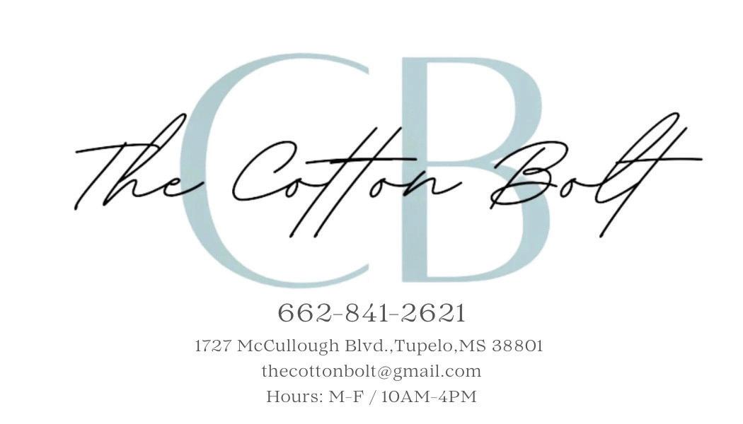 The Cotton Bolt 1727 McCullough Blvd. Tupelo, MS Fabric,trim,rugs,bedding,drapery hardware, custom window coverings & dorm room design 662-841-2621