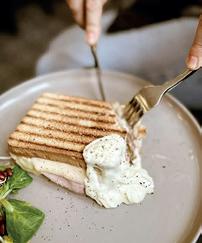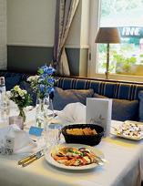Vielfältige Küche, mediterran und international, als Buffet oder Menü; im GREY nur Fingerfood