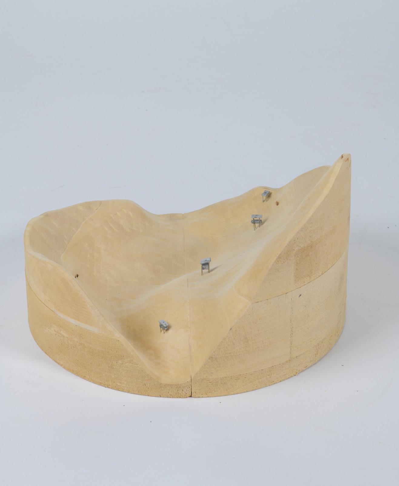 During this precedent study, I studied the relationship that the buildings of the zinc mine museum had with the landscape. The interaction of every building with the ground condition and the journey through the landscape between each building was key to my understanding of this project. Through the process of modelmaking, I was able to explore this relationship at various scales. At 1:1500 how each building sat within the ravine and the relationship between buildings. At 1.25 to see how the museum was built up from the face of the ravine and onto a timber frame structure to support the enclosure above. This lead me to explore how each building sat on the topography and the experience of moving through each stage of the landscape as a separate section of topography. This culminated in a topographical diorama that layered sections of the landscape on top of each other and allowed the user to look through the sections and see the depth of the landscape as a whole.