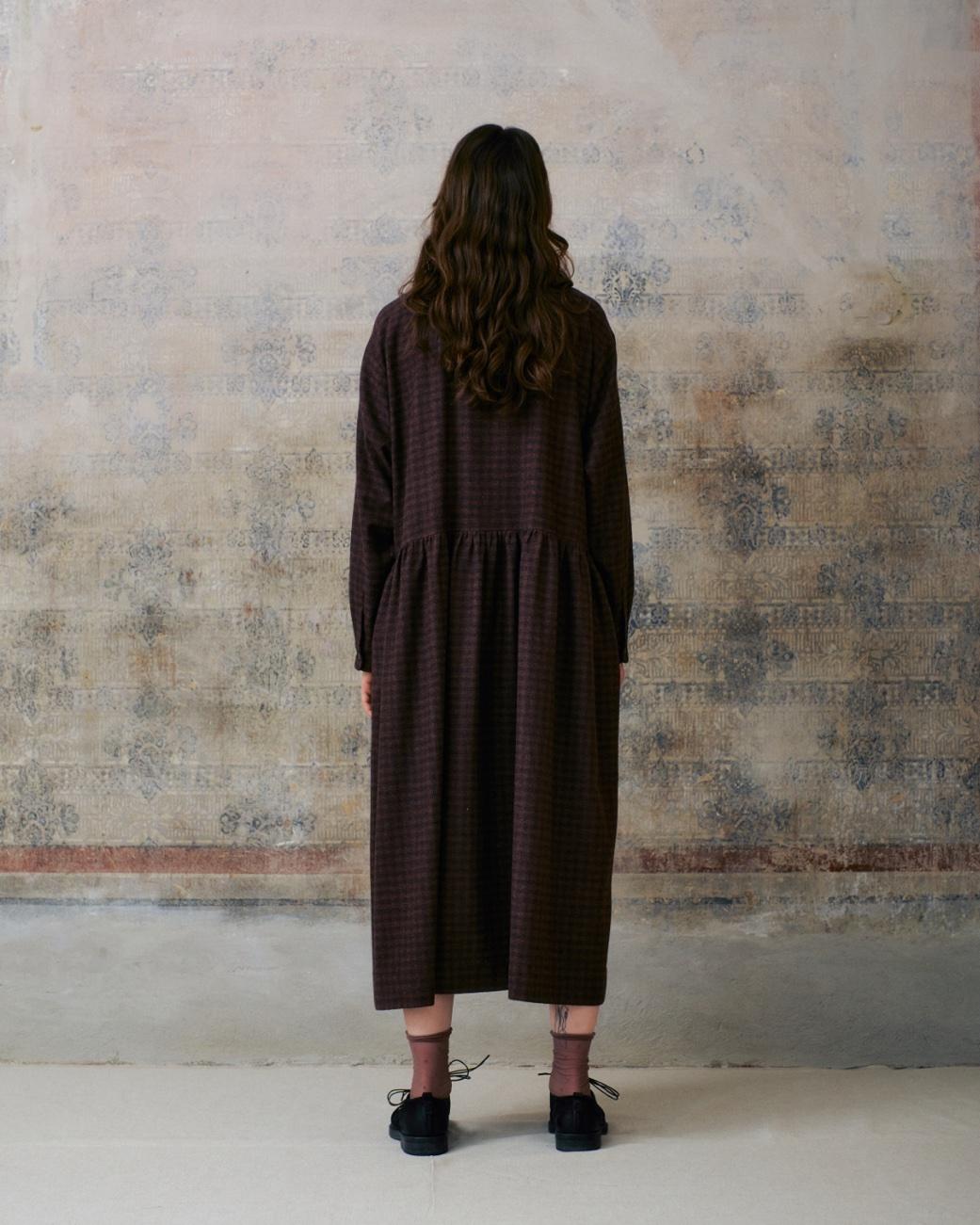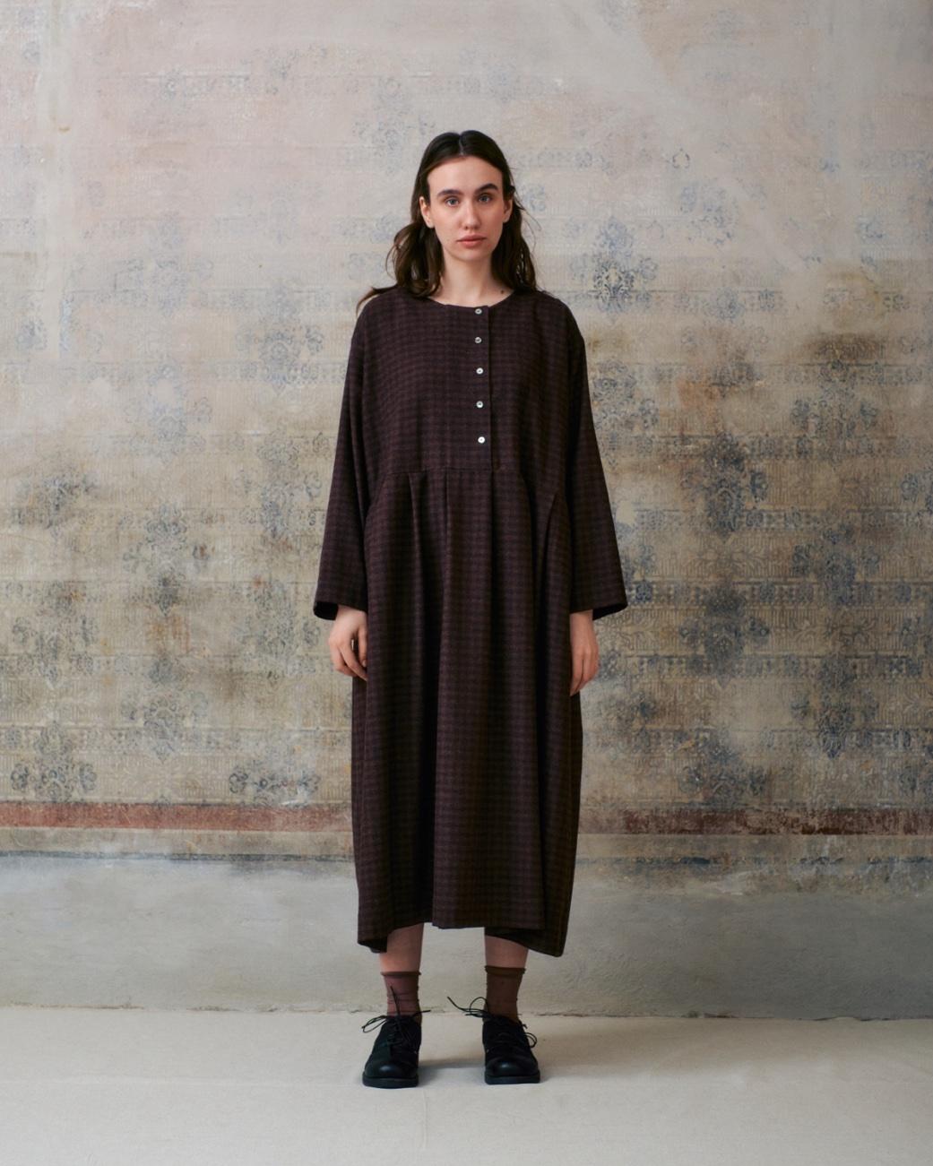 C1486 BROWN PATTERNED BUTTONS DRESS 50% VISCOSE 30% POLYESTER 20% WOOL