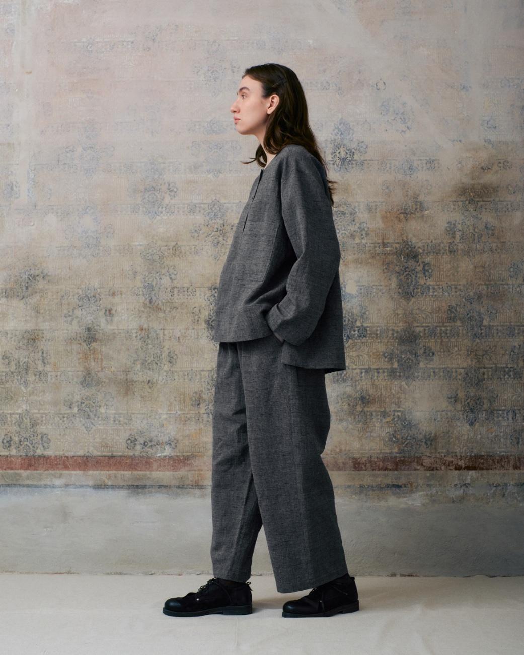 C1491 DARK GREY WOOL PANTS WITH PLEATS