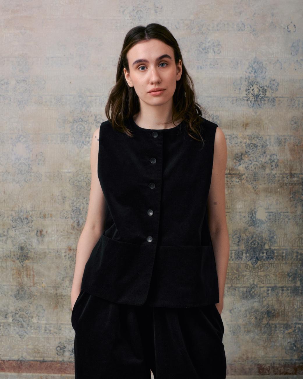 C1473 BLACK VELVET HIDDEN BUTTONS JACKET