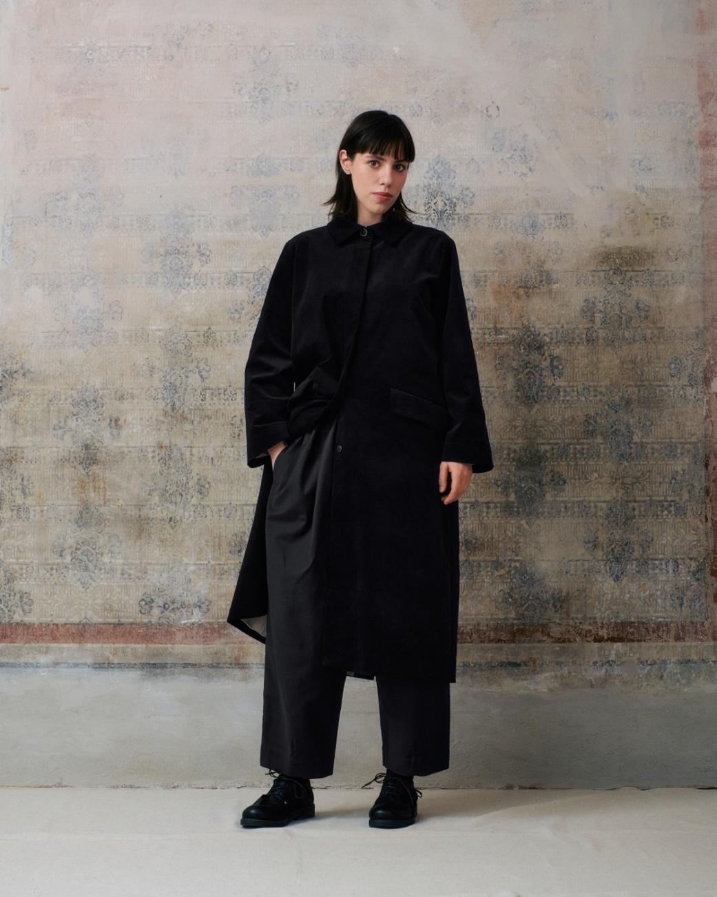 C1463 BLACK VELVET HIDDEN BUTTONS COAT