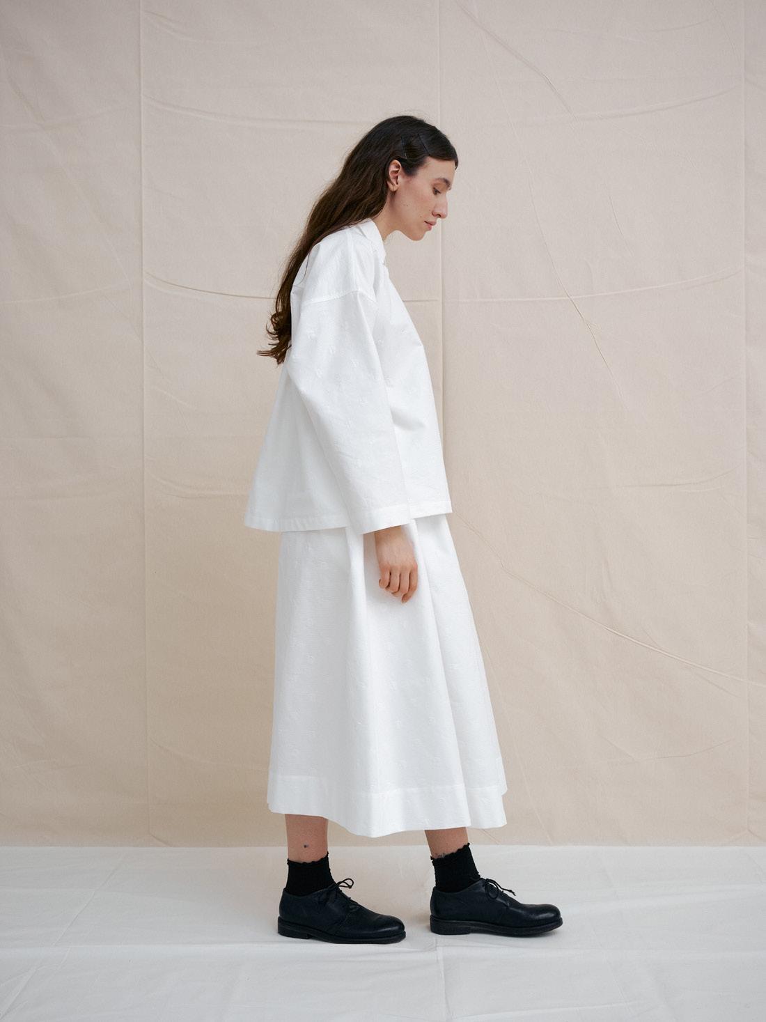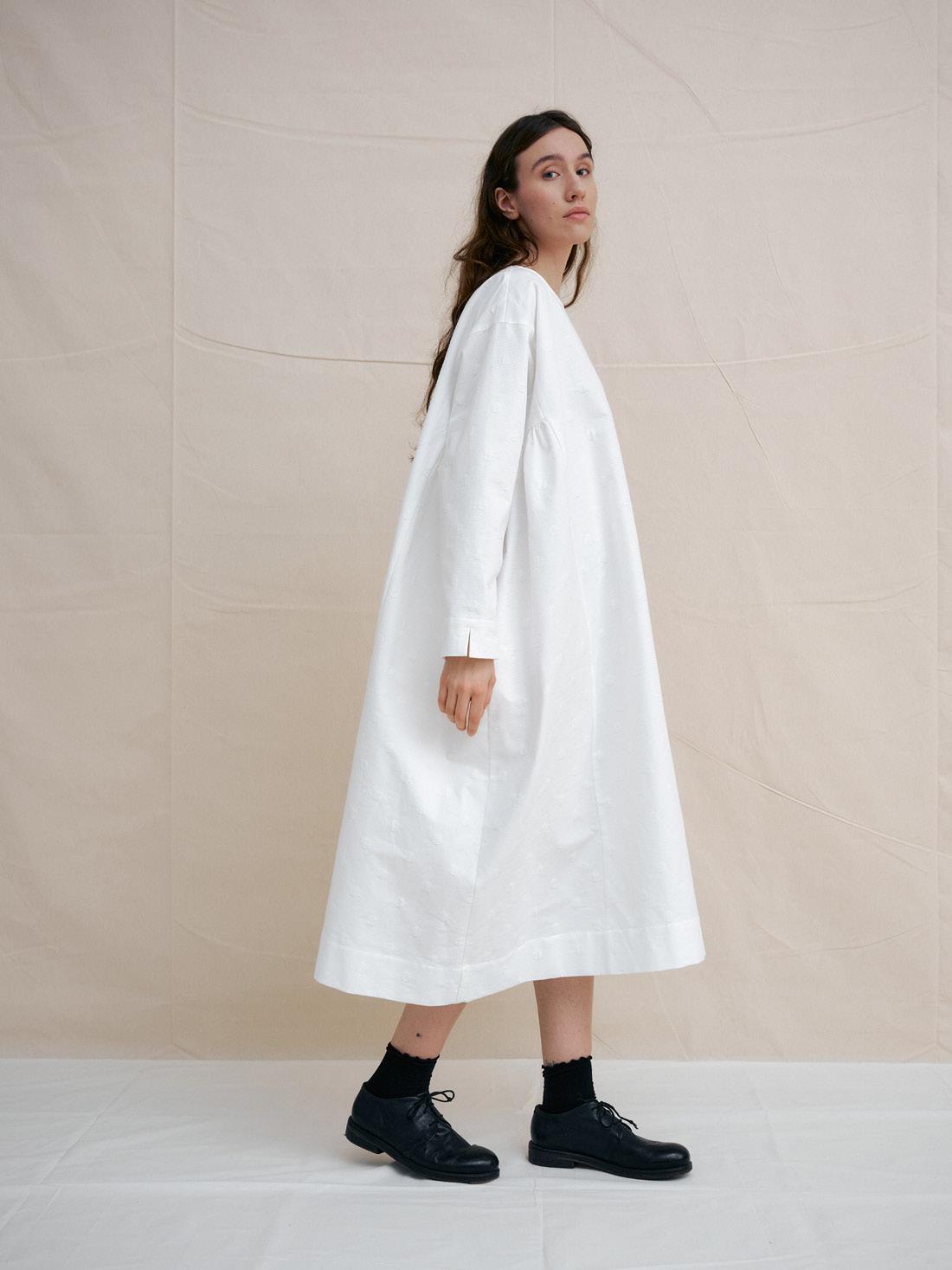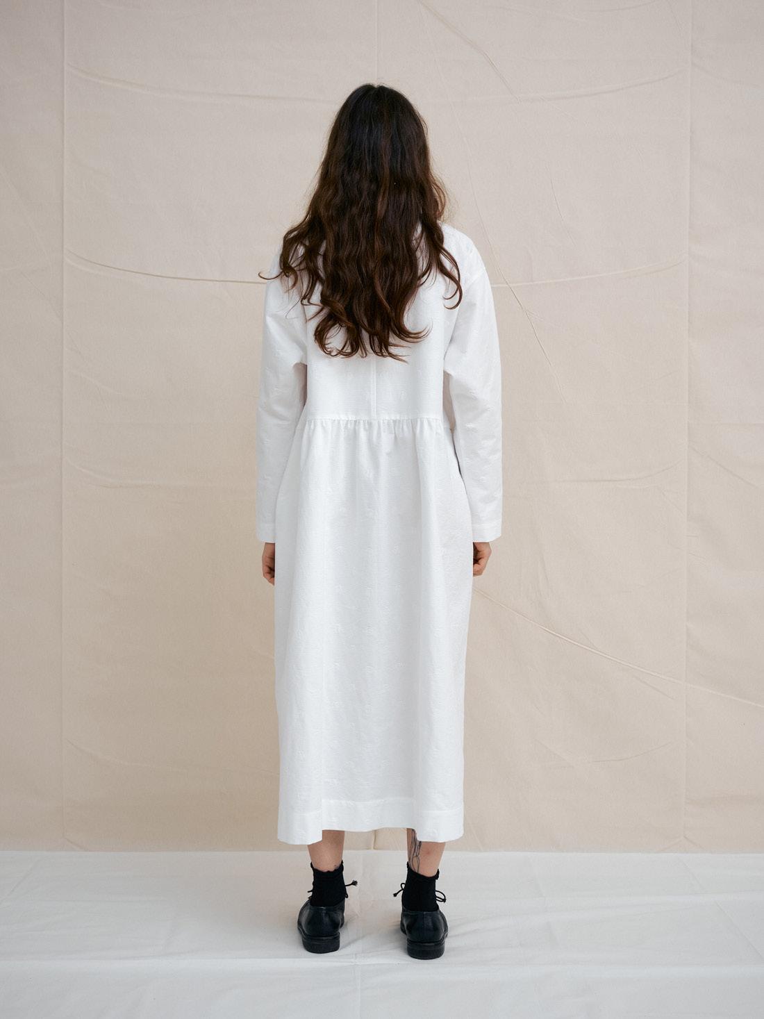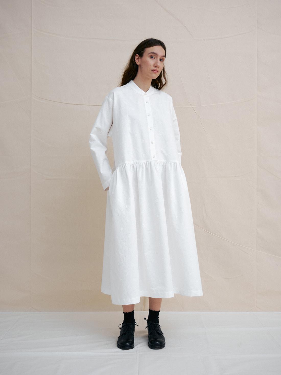 C1314 WHITE DOT BAND COLLAR DRESS 100% ORGANIC COTTON