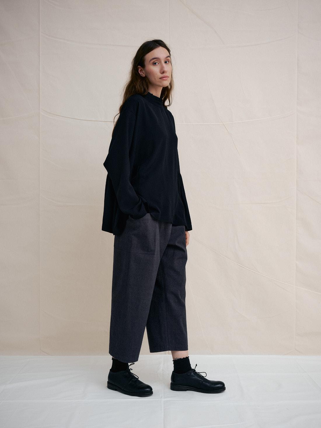 C1305 BLACK SILK SIDE GATHERS TOP 69% SILK 31% VISCOSE