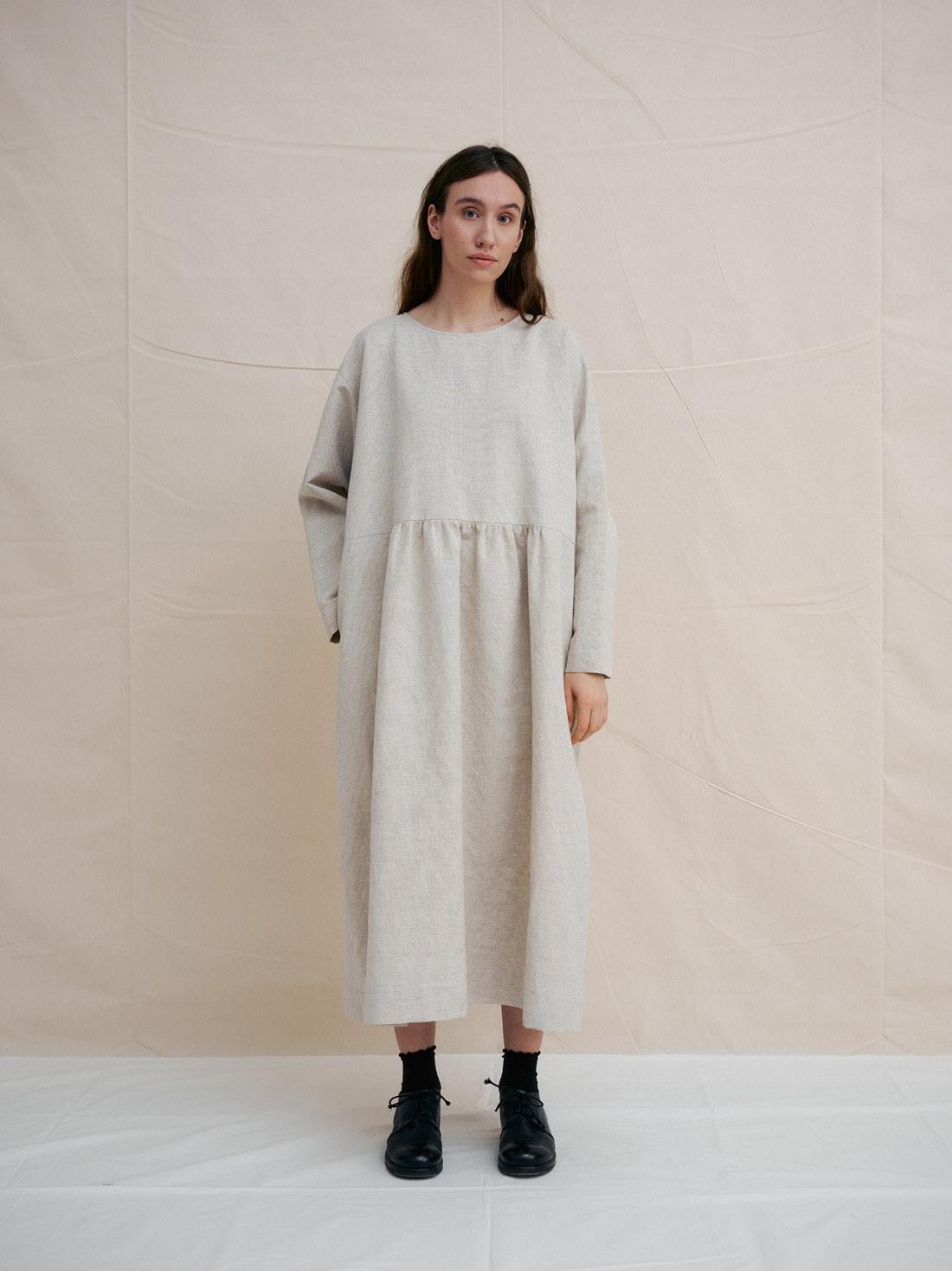 C1309 SAND PATTERNED SIDE GATHERS DRESS 42% LINEN 50% COTTON 8% WOOL